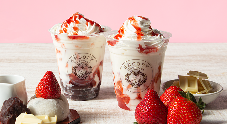 12/15(火)よりSNOOPY Chocolat 京都清水坂店 京都嵐山店にて冬の新作、「いちご大福」や「いちごミルク」をイメージしたチョコレートドリンクを発売します。