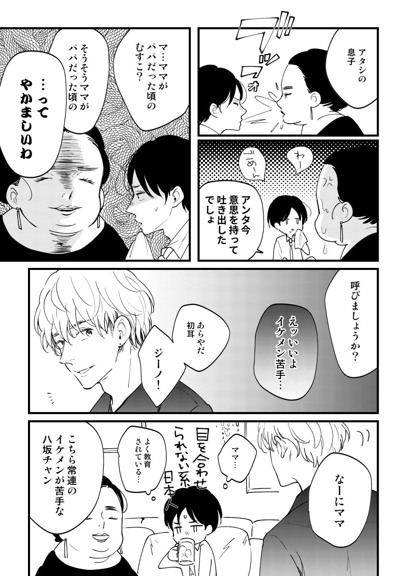 漫画を描きました。「日本語を教えてもらった」じゃなくて「ママがパパだった頃の子供」になりました。ハーフだと思われる。眉毛がそっくりである。