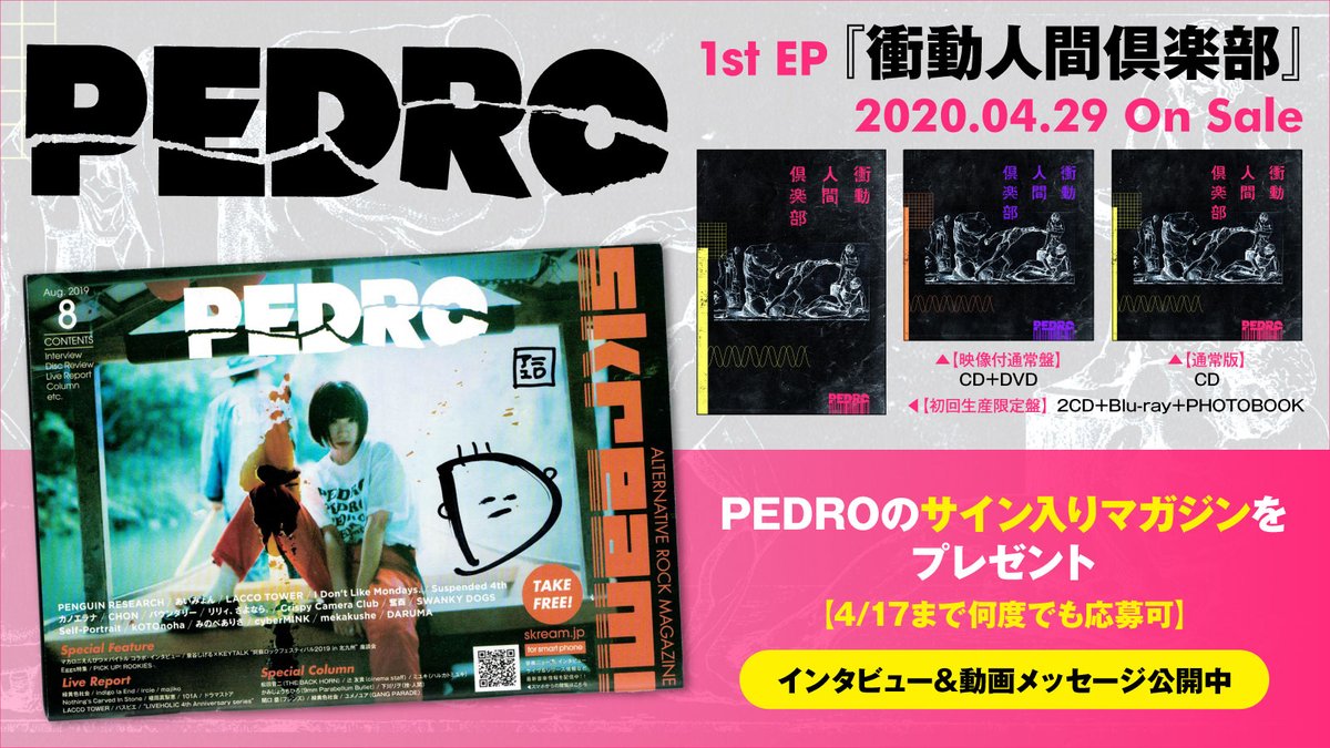 【本日締切】 #PEDRO skream.jp/news/2020/04/p…