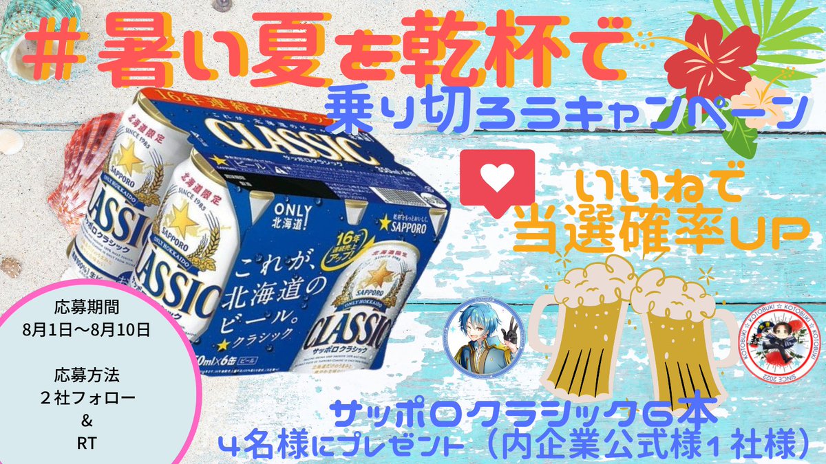 🍻サッポロクラシック350ml×2本を2名様に