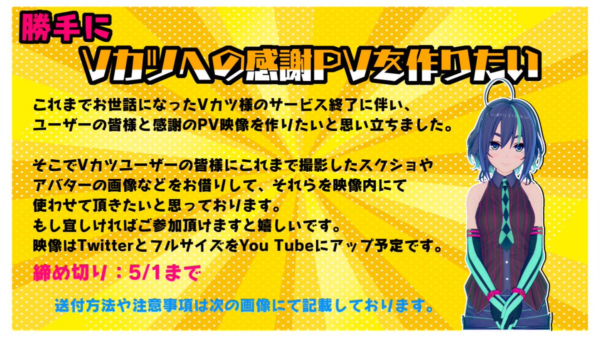 Vカツのサービス終了に伴いこれまでお世話になったVカツ様へのPV映像を作りたいと考えてます。