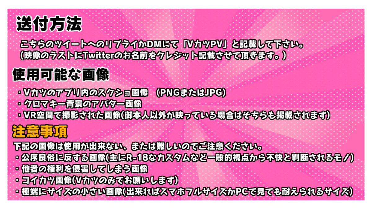 そこでユーザーの皆様のVカツ画像を映像にて使用させて頂ければと思っております。