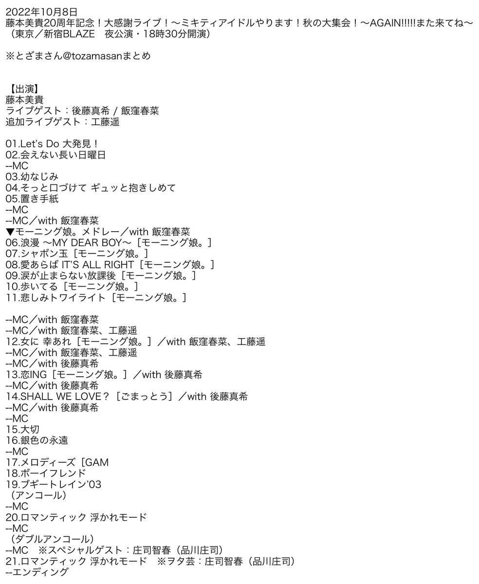 行く事に負い目感じてた庄司さんが席に着くなりヲタに深くお辞儀し、藤本さんの振りで客席から「ミキティー!」