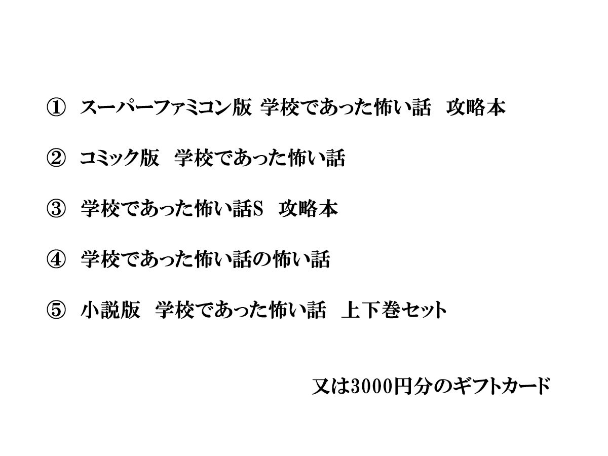抽選で5名様に秘蔵の『学校であった怖い話』作品又は3000円分のギフトカードをプレゼント!
