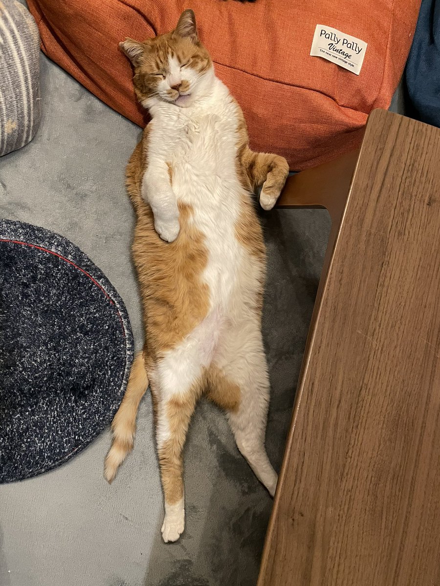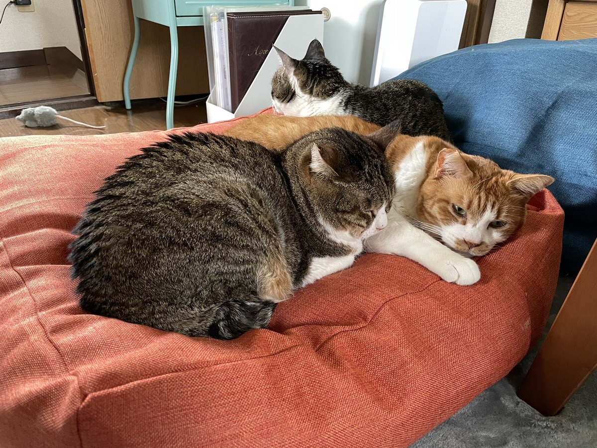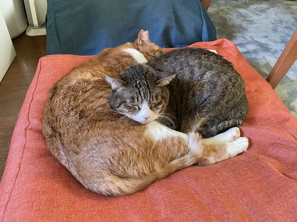 激しすぎる顔面毛づくろいで顔の皮が引っ張られて、つぶってる目がちょいちょい強制的に開かせられてるの見て笑ってしまった。