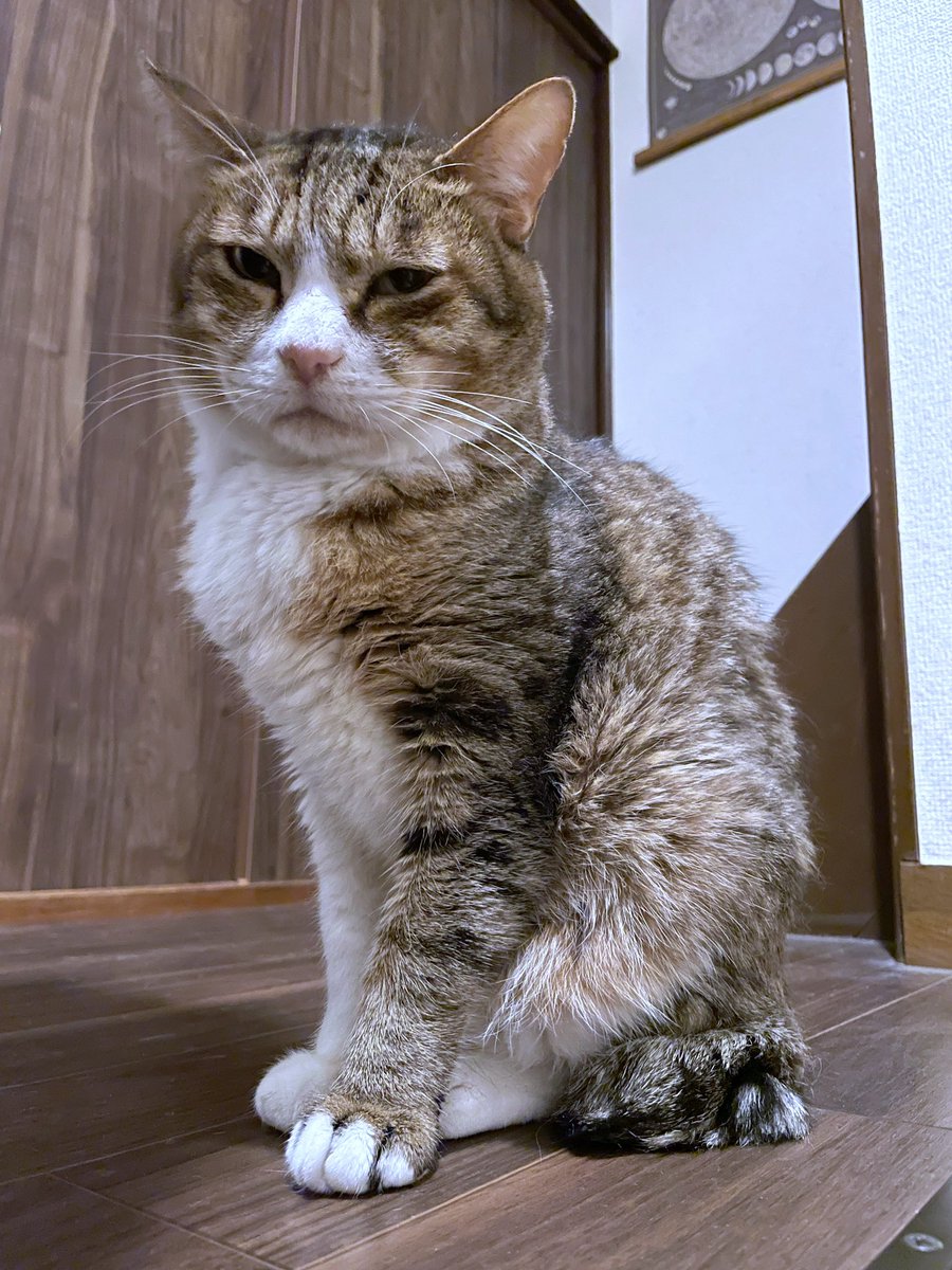 お迎えしてから3週間人間が苦手で逃げ回り続けためい君が今日になって何故か逃げなくなったけど、慣れたというよりも「この人間思ったより遅いからおやつ持ってるかどうかしっかり確認してから逃げてもじゅうぶん間に合うぞ」という雰囲気が強い。
