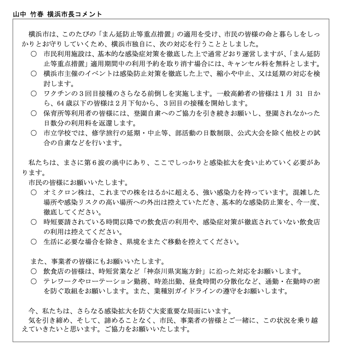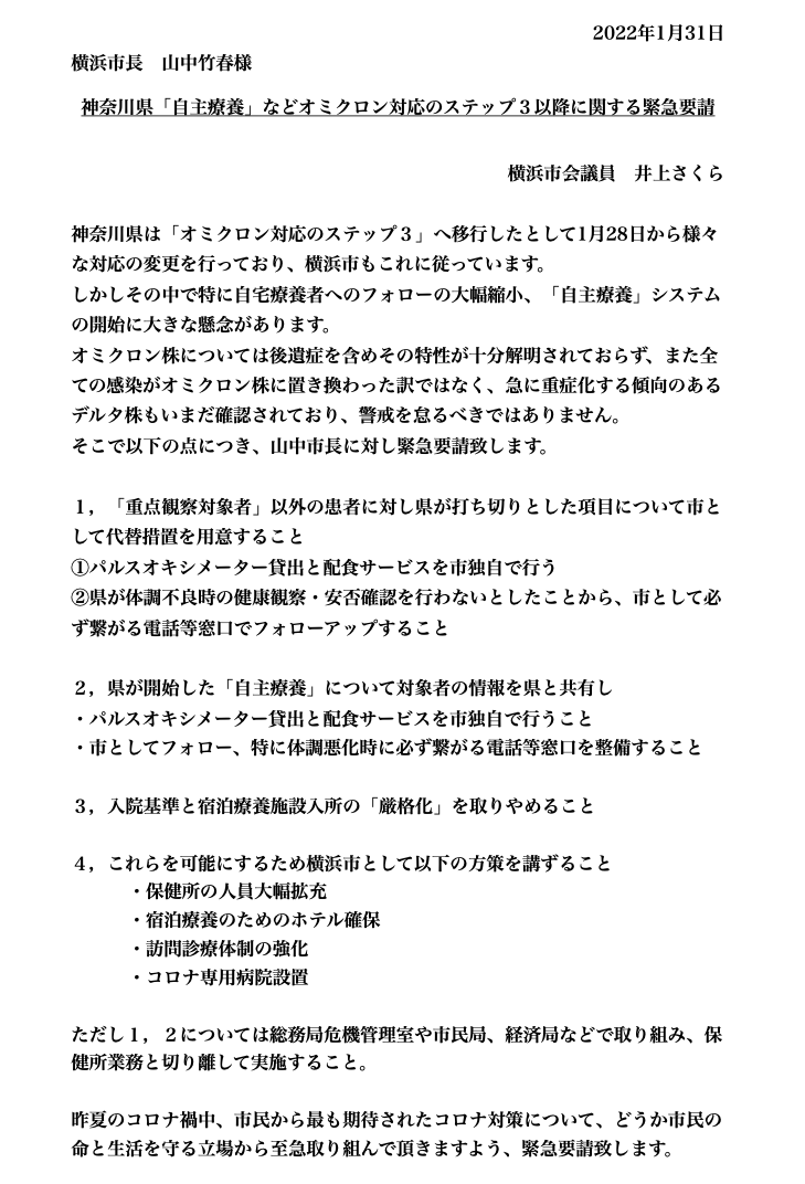 こんな事態なのに、コロナの専門家と言って市民の期待を集めた山中市長からの発信がない。