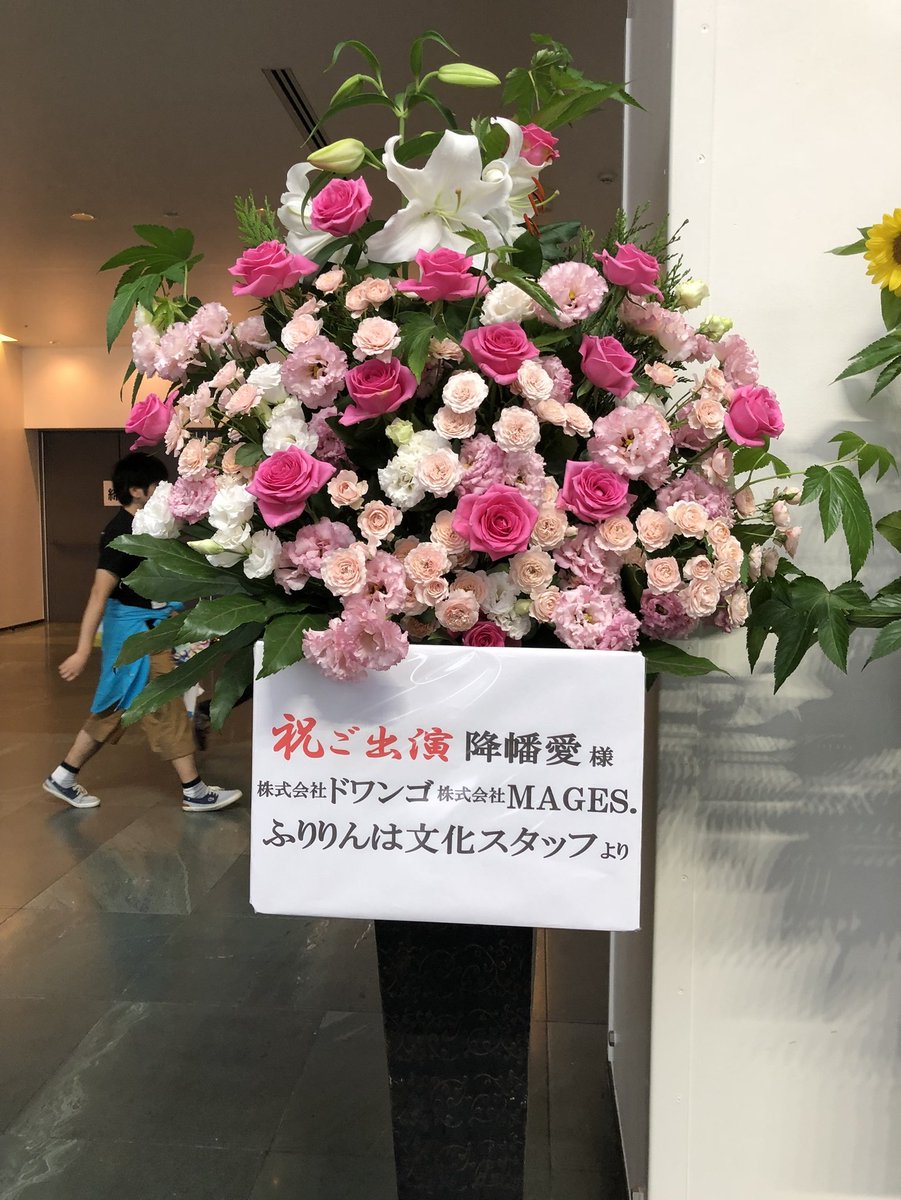 ふりりんライブお疲れ様~🤗🤗🤗番組からお花🌺🌼🌺ださせてもらいましたー!ピンクと白で #ふりりんは文化 カラーですね(*ฅ́˘ฅ̀*)♡ #文化人の人もお花の写真あげてた #お花キレイ #ふりりん何食べるのかな #きっと0キロカロリー
