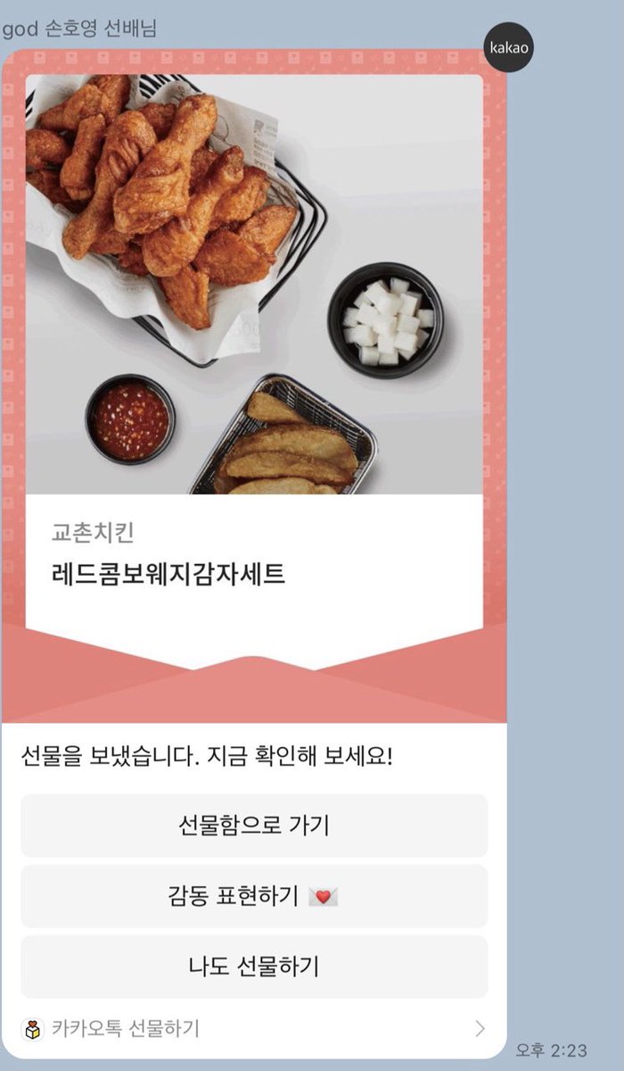 바로 치킨 보내주신 god 형님들💗