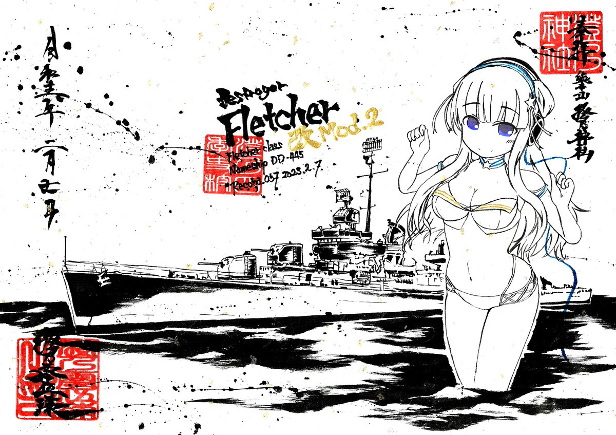 墨を使って艦これフレッチャーさん描いてみたよ。