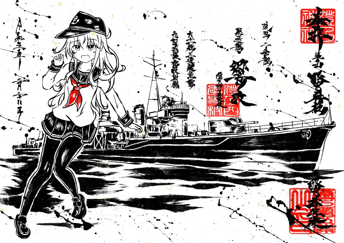 墨を使って艦これ山風ちゃん描いてみたよ。 進水日おめでとう!