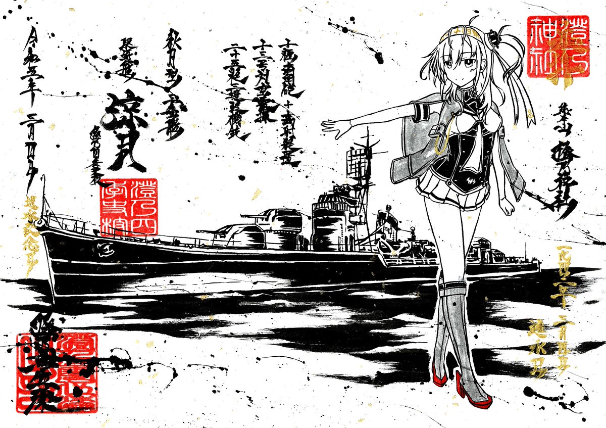墨を使って艦これ涼月ちゃん描いてみたよ。 進水日おめでとう!