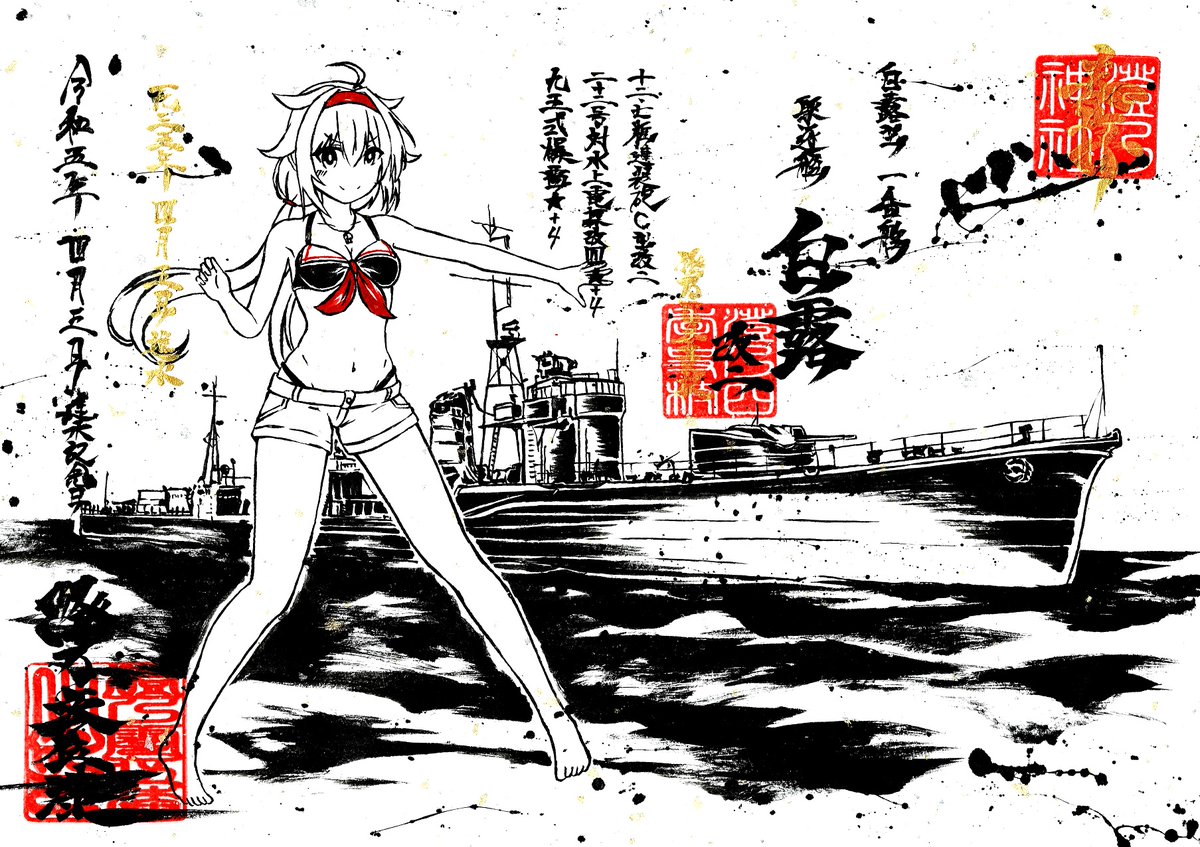 墨を使って村雨ちゃん描いてみたよ。 進水日おめでとう!