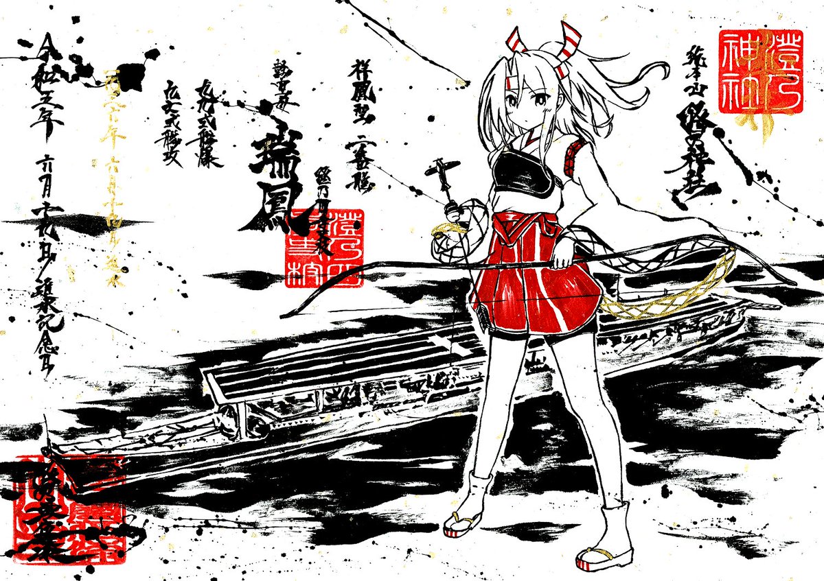 墨を使って艦これ瑞鳳ちゃん描いてみた。 進水日おめでとう!