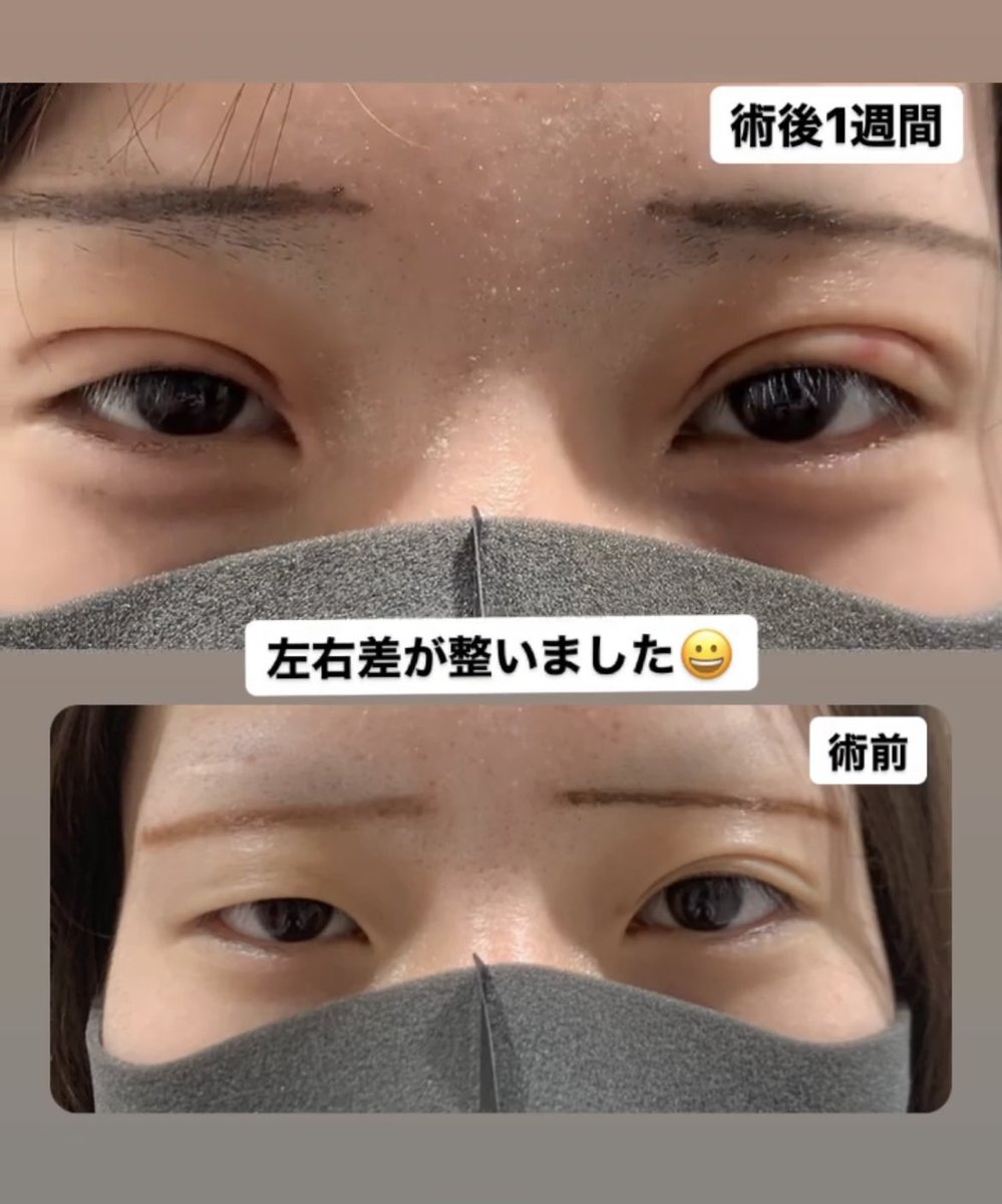 二重の仕上がりとかよりも眉毛が気になって仕方ない症例…
