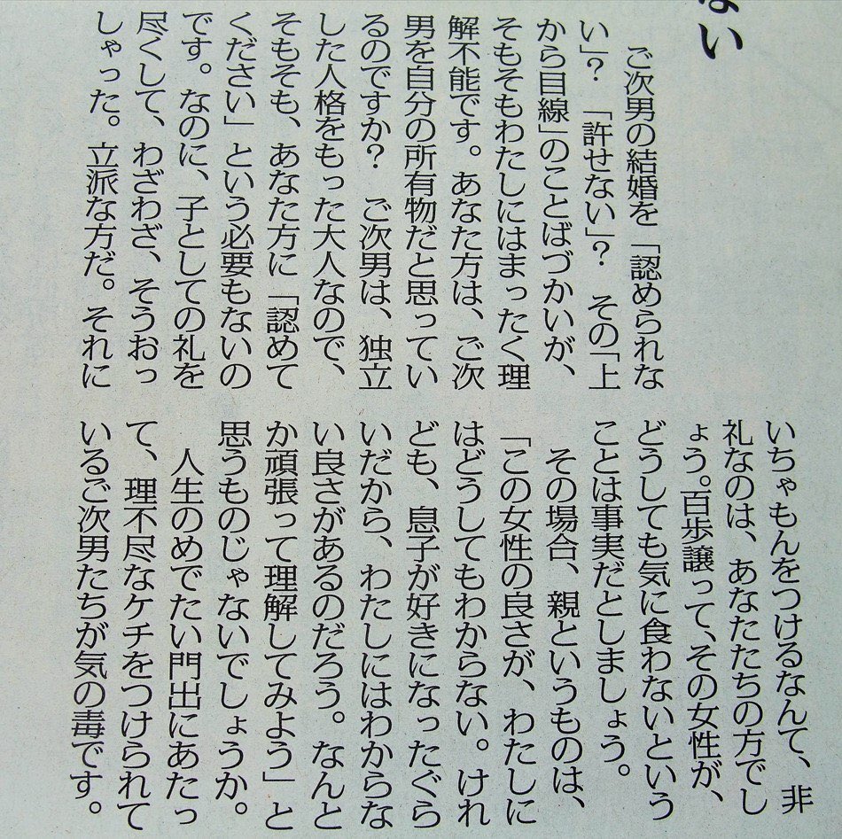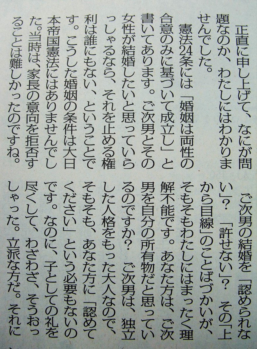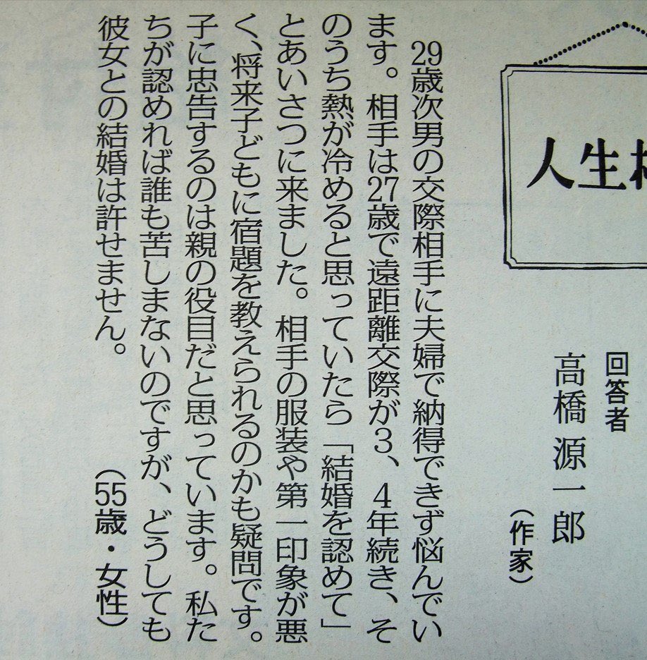 「次男の交際相手が気に入らない。結婚は絶対に許さない」って言う毒親をバッサリ切る高橋源一郎は最高