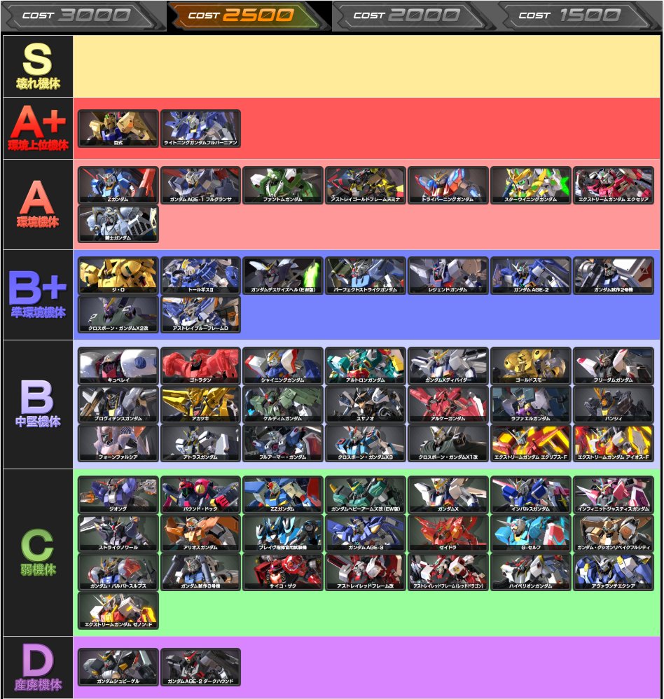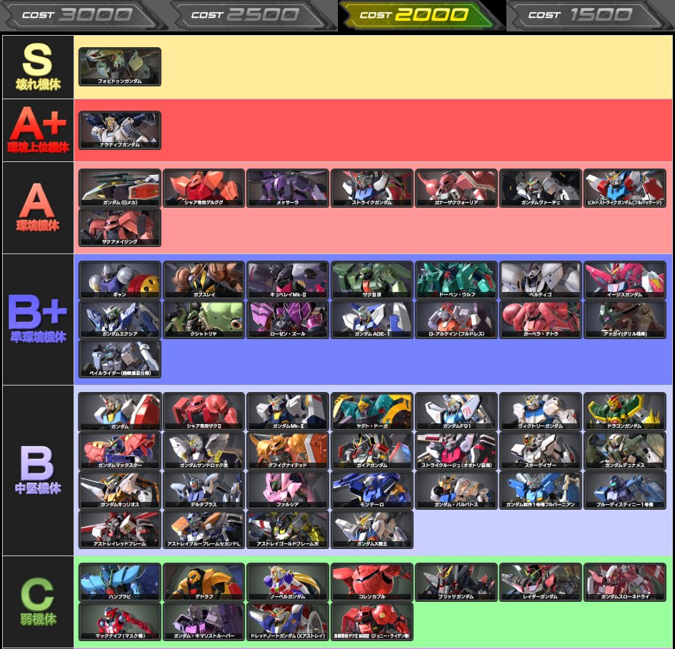 ■エクバ2初中級者向けシャッフル機体ランク表