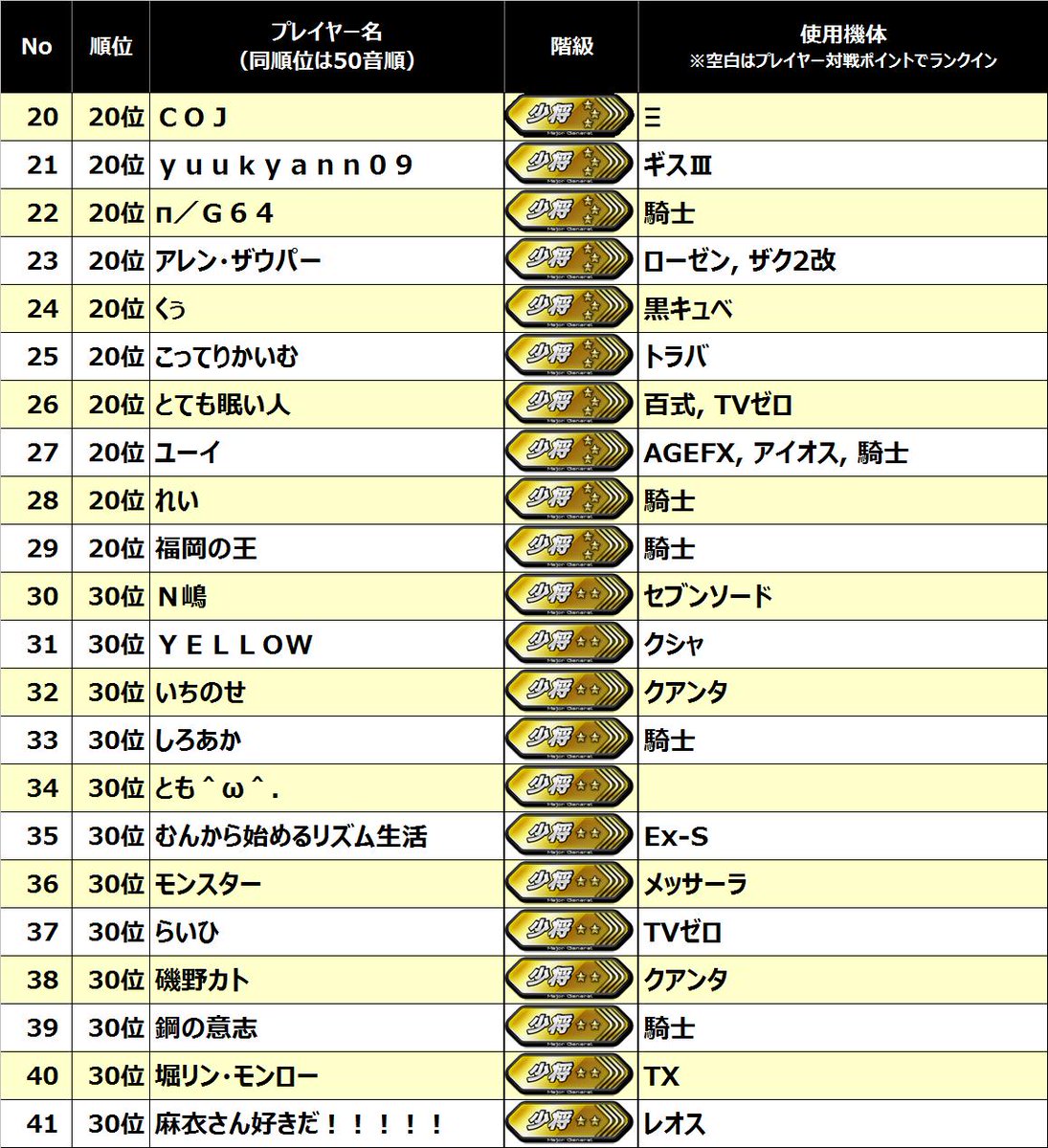 ・全プレイヤーのデータを等しく集計しているので上級者・固定の方は参考程度にご覧ください
