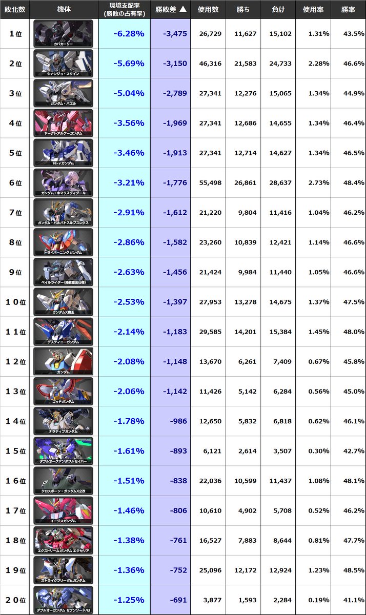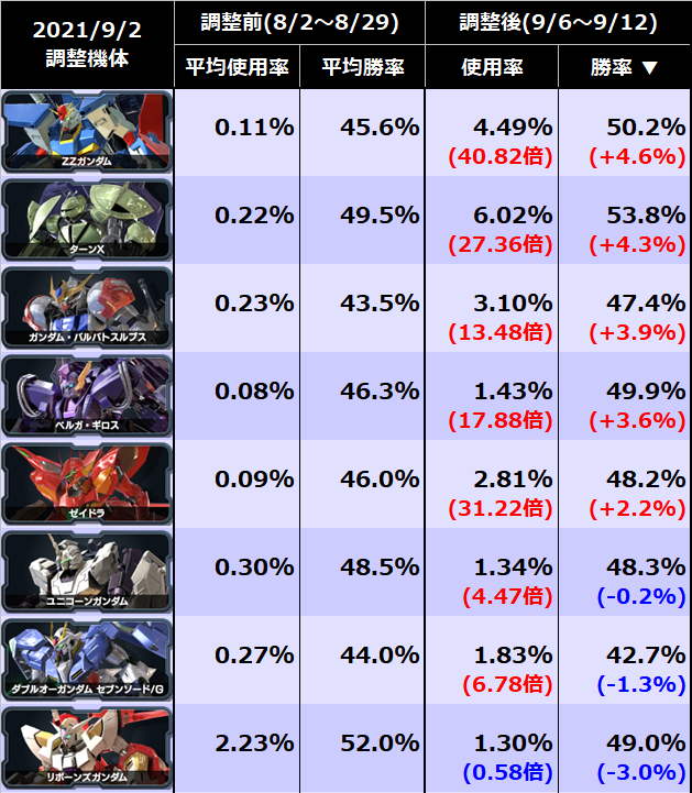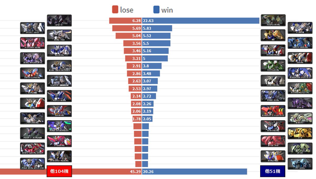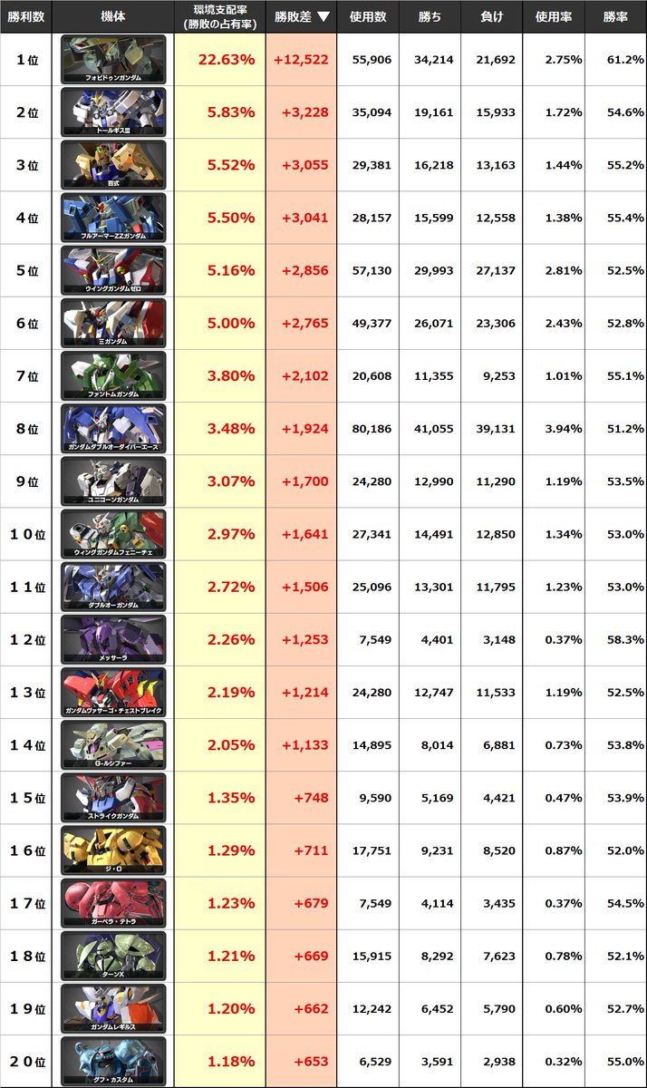 バンシィは使用率&勝率どちらも198機中1位(クロブでW1位は初)
