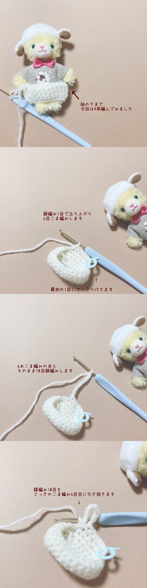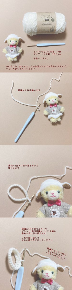 「鎖編み」「こま編み」「引き抜き」と編み終わった後の糸処理ができる人なら簡単に編めるセーター思いついたのでレシピつくりました☺️ 2ツイートに続いてしまうのですが、よかったら使ってください🧶 ぷちサイズですが目数増やせば大きくできます(最初の編み目は4の倍数で) つづく↓