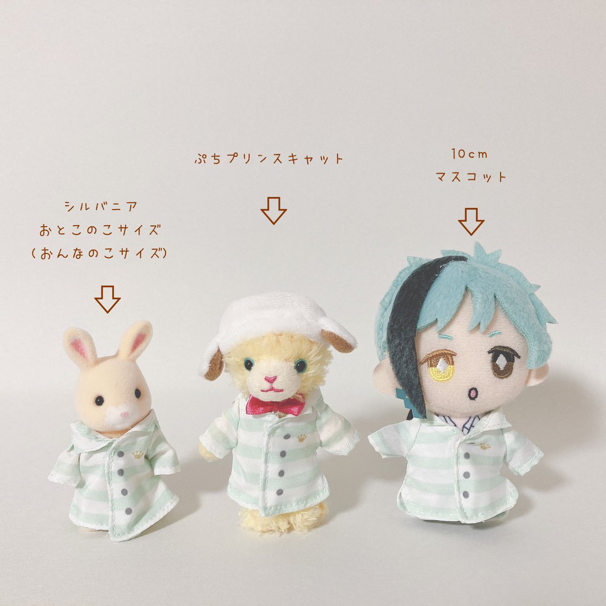 ご存知の方も多いと思いますが ぷちとシルバニア(男の子.女の子)と10cmマスコットは体のサイズがほぼ同じなのでなんとなーくお洋服の共有ができます。 (ぷちと10cmマスコットは靴もほぼ同じです☺️) なので、シルバニアの本で作った服を着せることができるのですが…