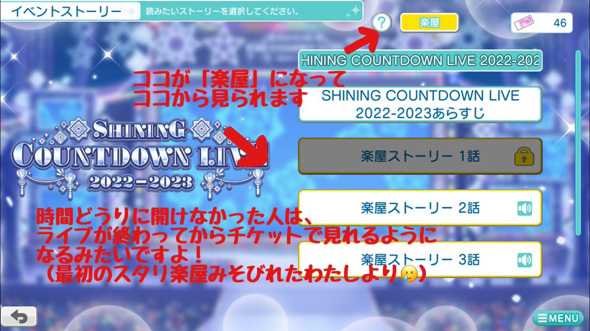 シャニライ楽屋、時間内に開けた人はいつでも見れるみたいですよ☺️ 最初のスタリを見そびった私はライブ終わるまでおあづけ〜😭😭😭 ↓