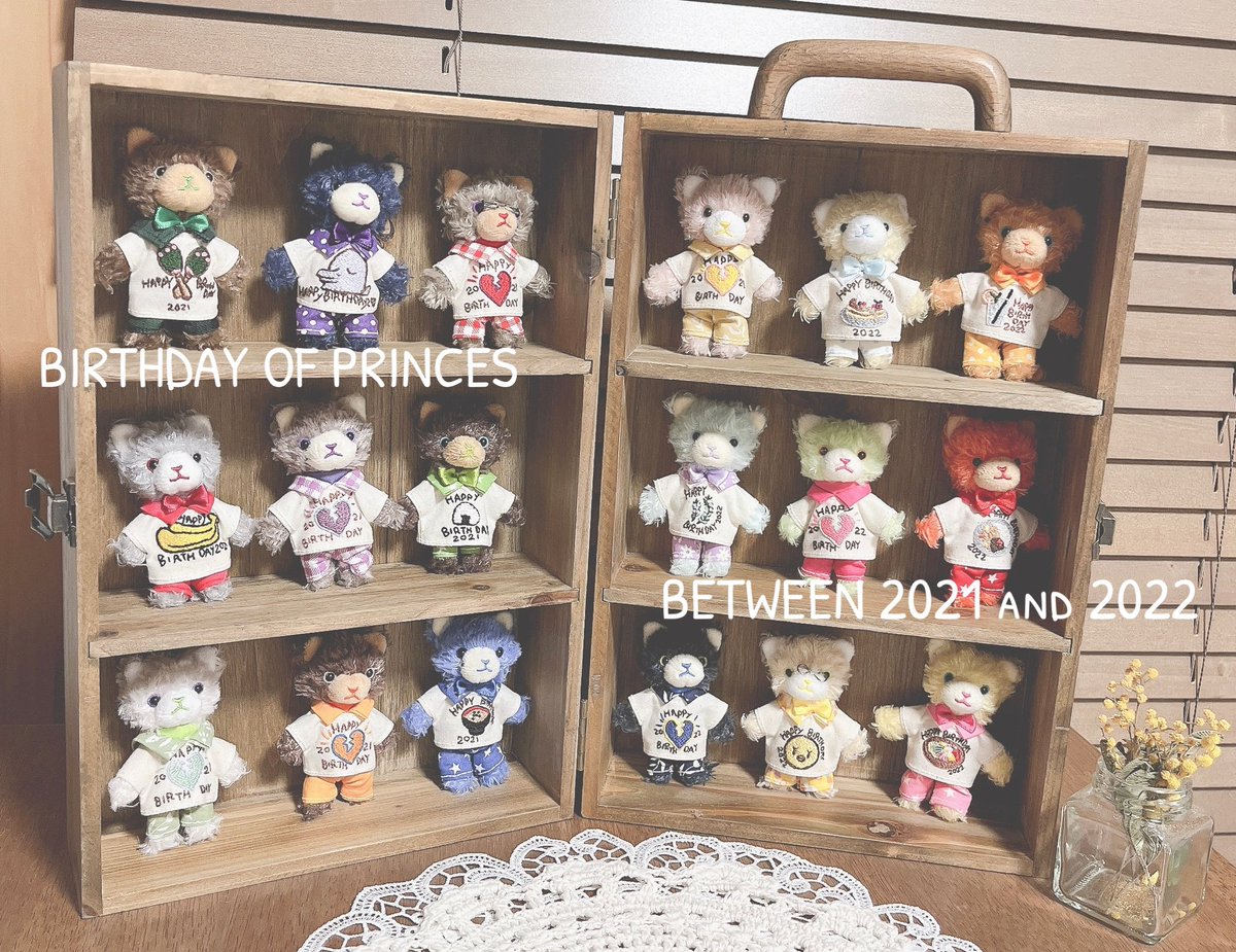 2021年の嶺ちゃんBDから 2022年の翔ちゃんBDまで ぷちのお洋服作ったのを着せて写真を撮りたかったんですが、なかなか上手に並べなかったの先日salut!でいい感じの箱を見つけて購入してきました〜☺️💕 やっと撮れた〜💕