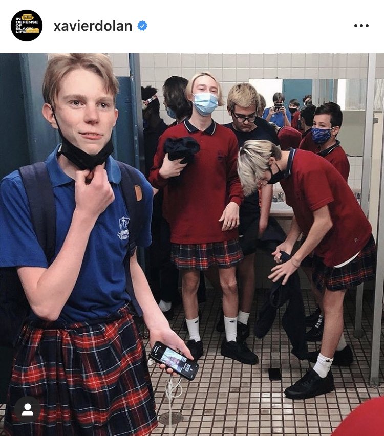 グザヴィエ・ドランのIG。今週モントリオールの高校でスカート登校した男子たちがいたと。彼らは、クラスメイトの女子の、「とりわけ学校の制服は女性を無用に『モノ化』しているし、服が個人を定義してジェンダーに縛り付けることはできない!」という主張に連帯したそう。