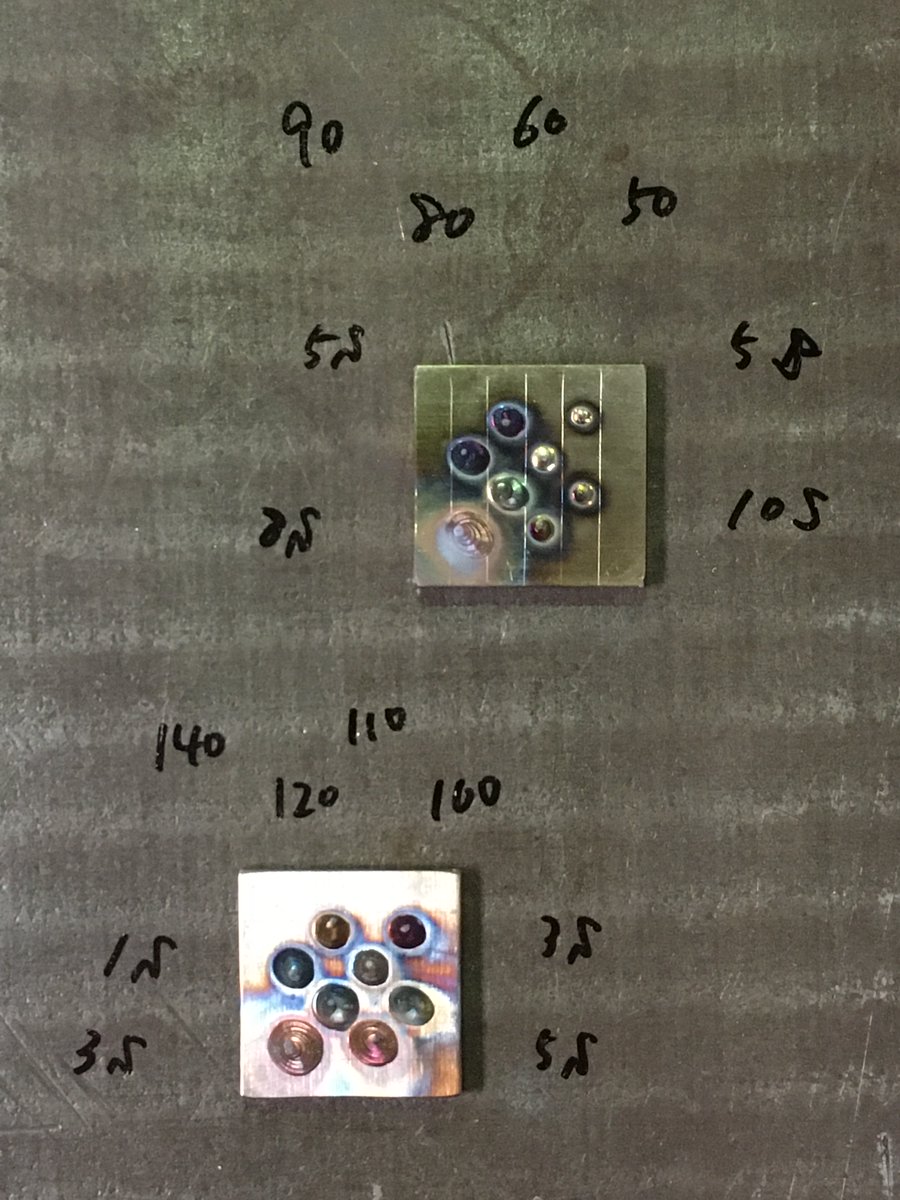 いつか溶接で「色」の指定をされる時代が来るかなーと思いつつ、電流値や熱を掛ける時間、板の厚さや形状によって発色が全然違うという地獄を見ています😇w