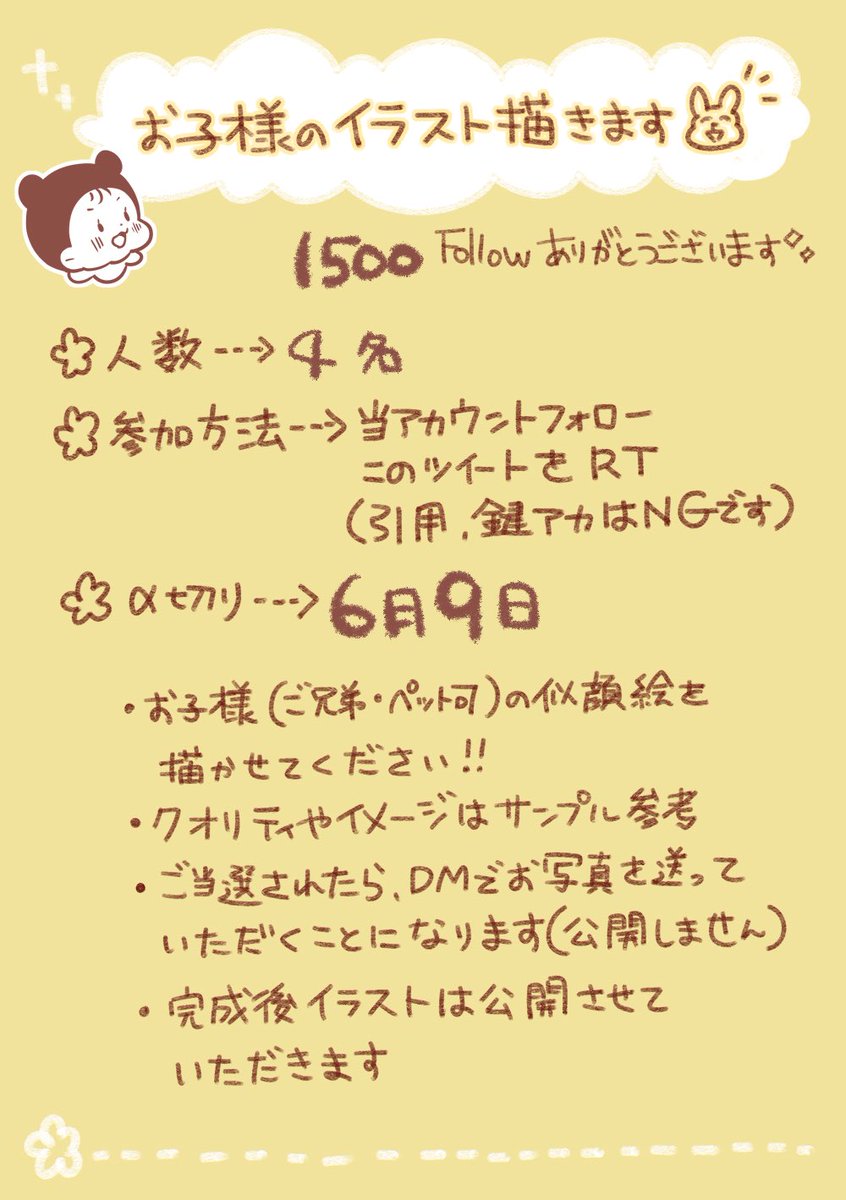 フォローありがとう&似顔絵描きます🎉👶🎉