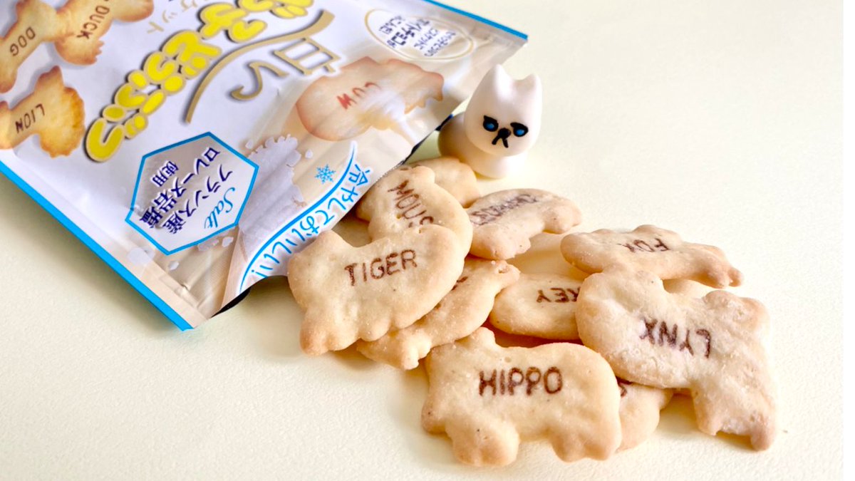 【食べたぜ】ホワイトチョコがしみこんだ「白いたべっ子どうぶつ」のソルティ味!ホワイトチョコの上品な甘さに、塩気のアクセントが効いてるぜ。冷やしてから食べると、この甘じょっぱさにひんやり感もプラスされてソーグッド。