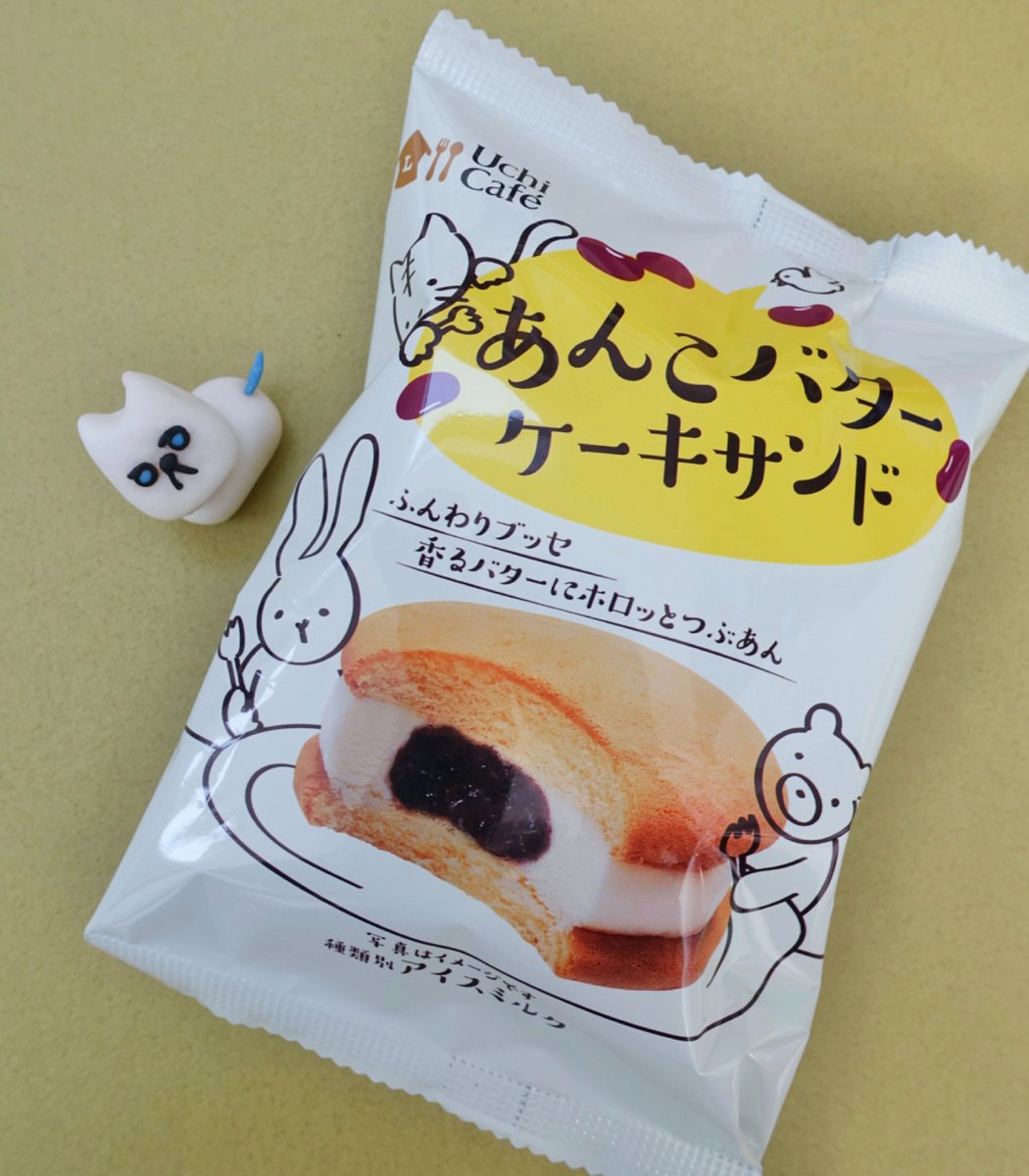 【食べたぜ】ローソンの「あんこバターケーキサンド」アイス。ロレーヌ岩塩を使ってるっていうバターブッセの生地が、しっかりフワフワでケーキ感あるぜ。あんこは粒あん。ぱくぱく、片手で食べられるのがうれしいぜ。