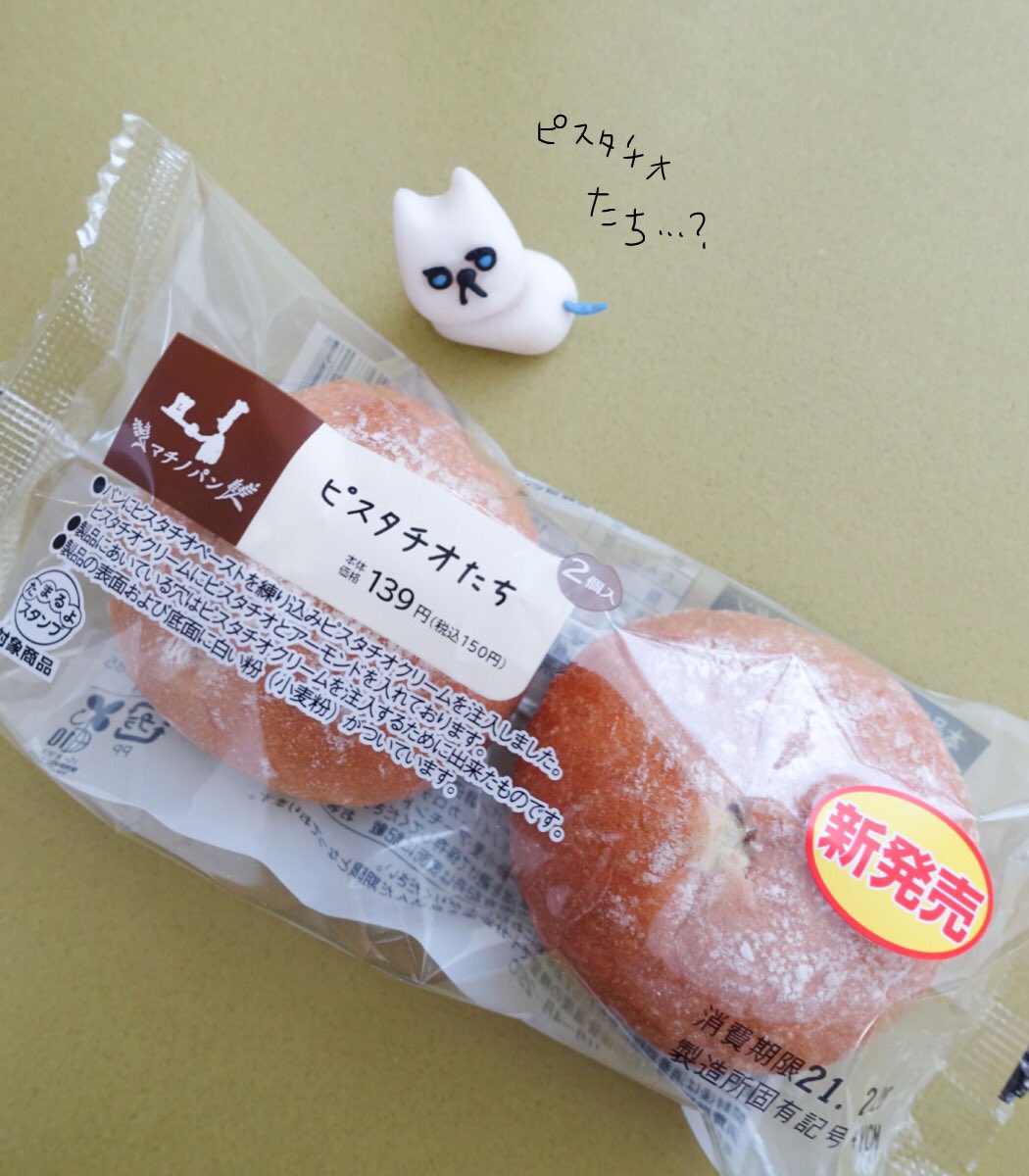 【食べたぜ】ローソンの新作パン、「ピスタチオたち」。この意味深なネーミングは、パンがふたつ入りだから?それとも、ピスタチオをたくさん使ってるから?...謎は深まるぜ。けど、中に入ってるナッツとバターのクリームが香ばしくておいしかったから、オールOKだな。
