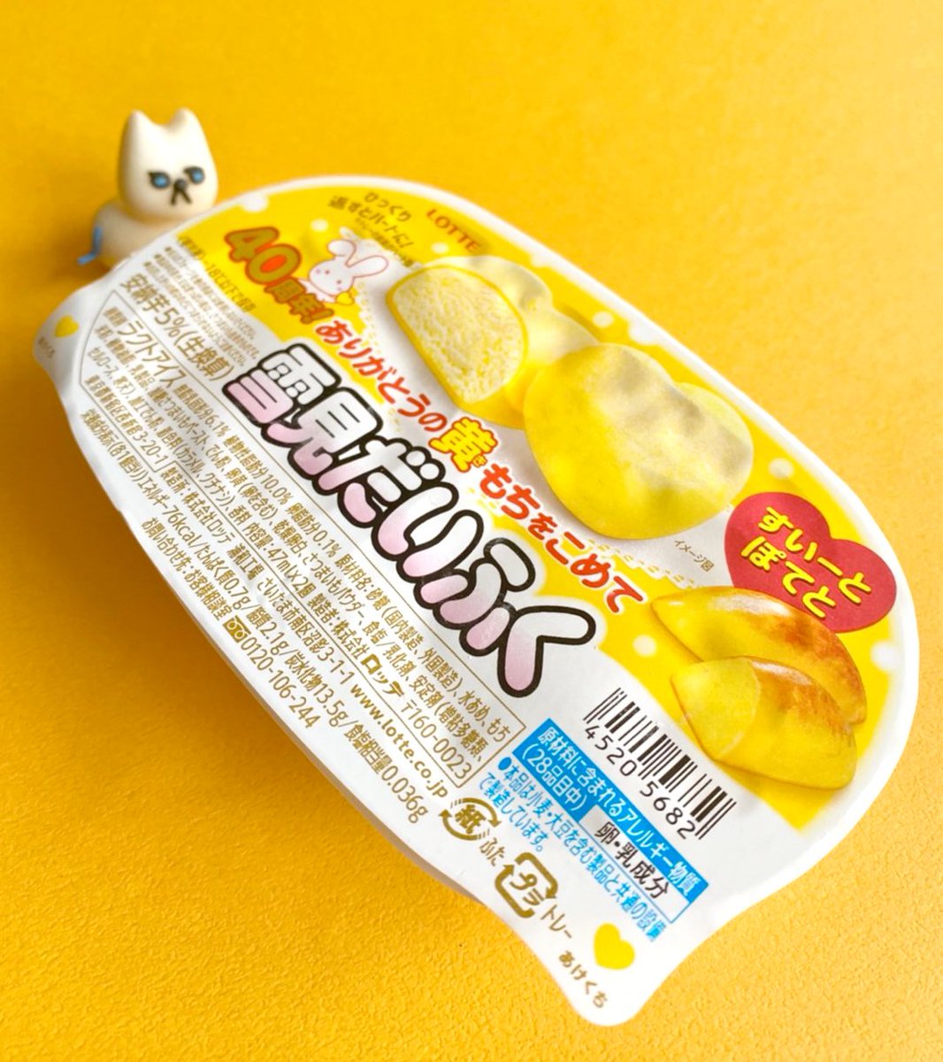 【食べたぜ】きょう発売の「雪見だいふく すいーとぽてと」をさっそくハントしたぜ。お皿の上にぽんっとひっくり返すと、ハートの形が現れるんだぜ。もちもちハートの中には、安納芋を使ったお芋アイス!あたたか~いほうじ茶と一緒にいただきたい感じ。うまうま。