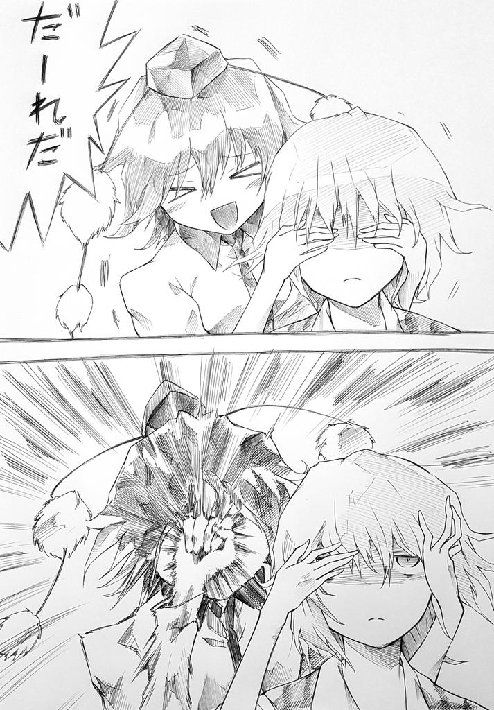 飼い主にほっぺた揉まれる八雲藍 チラリする歯が最高