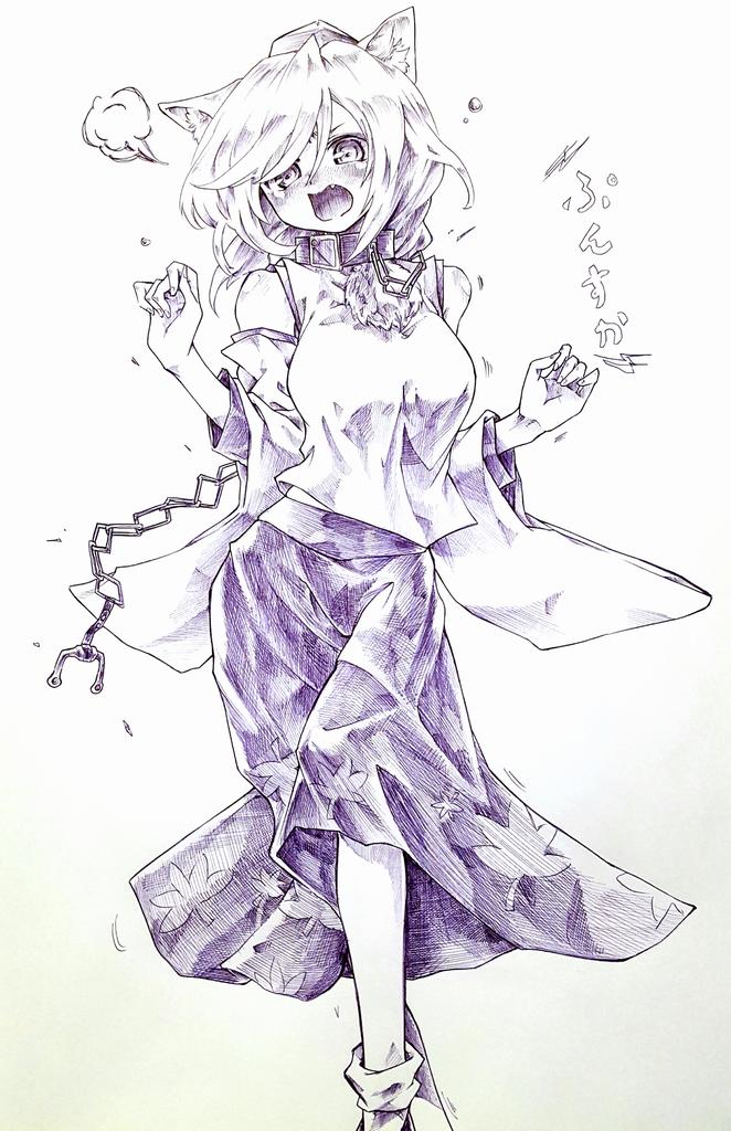 イタズラで首輪つけられてぷんすかする 犬走椛 描いた