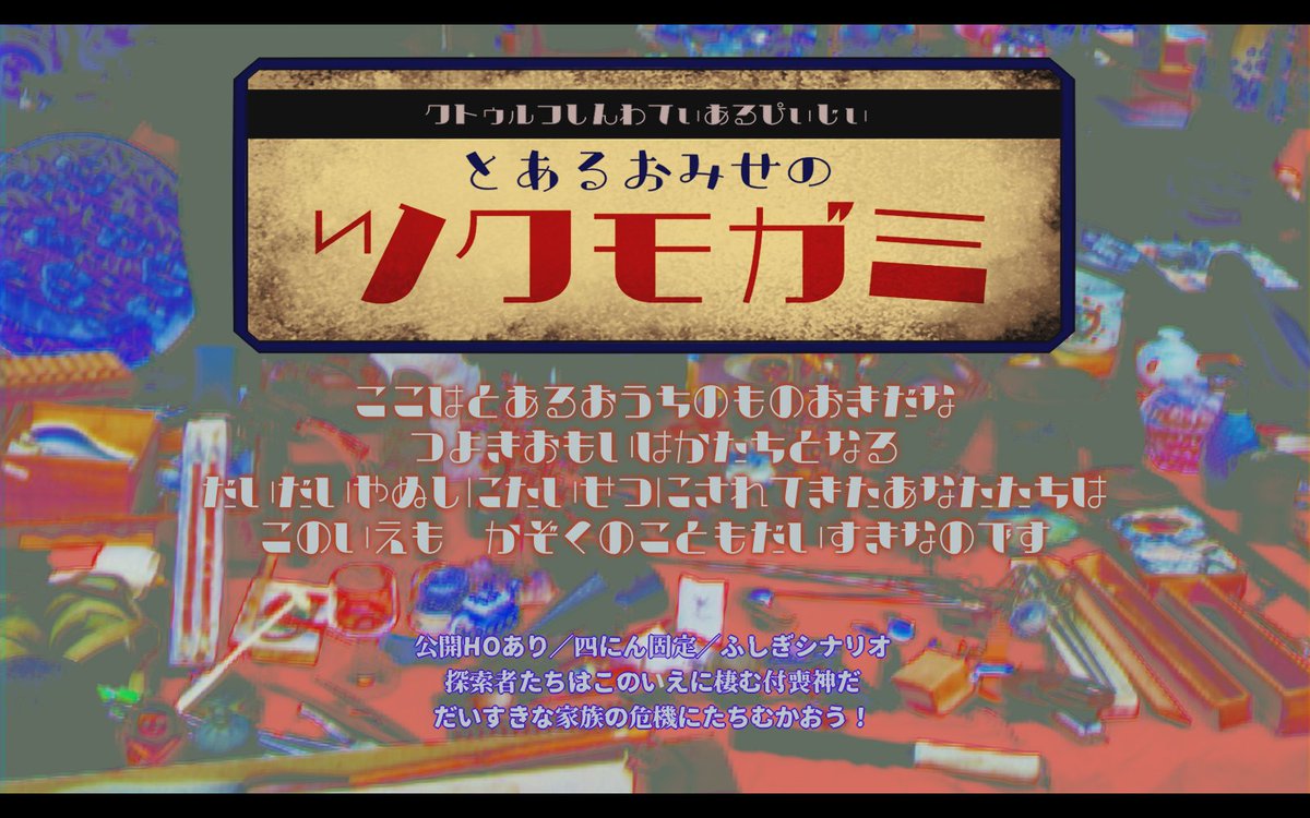 シナリオを歩みつつ皆でシナリオを作り、KPのPCが遊ぶ…そんな感じのアドリブ満載シナリオです!うまく遊べるかわかりませんがよろしくお願いします!