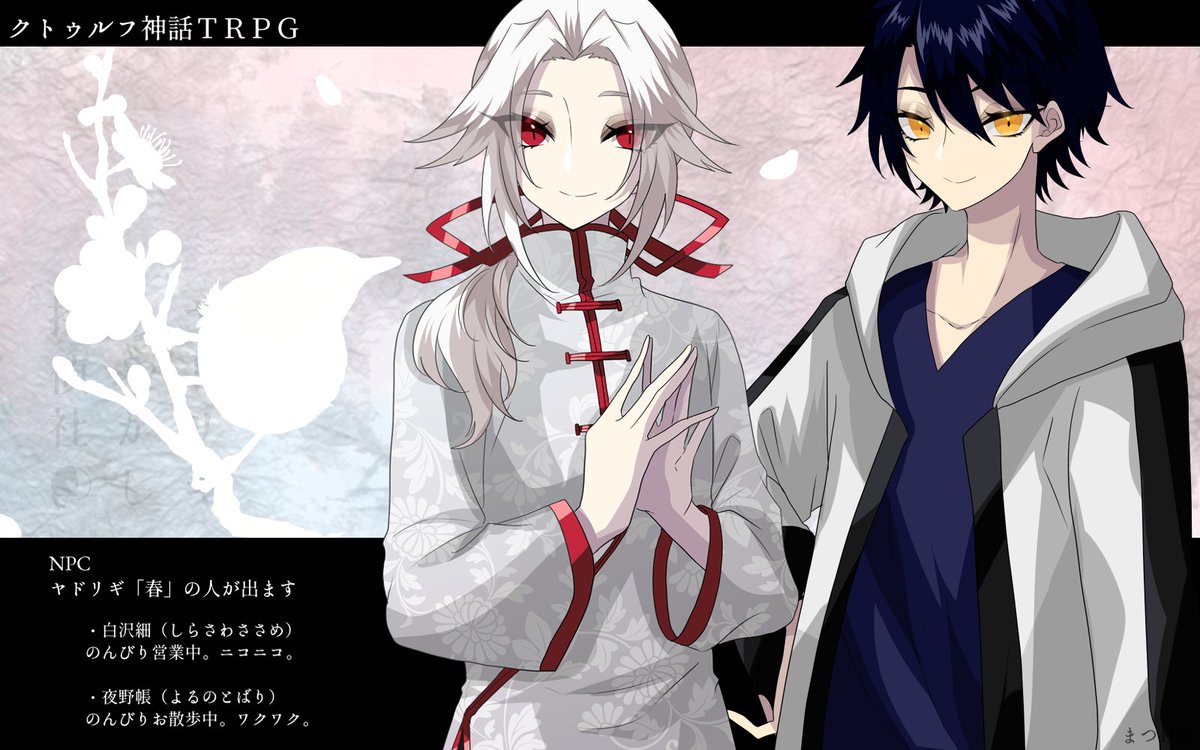 新作シナリオを公開しました!ヤドリギあやかし探偵社のネタバレを含むスピンオフシナリオです。NPCとお話がしたい人は遊んであげてください。よろしくお願いいたします!