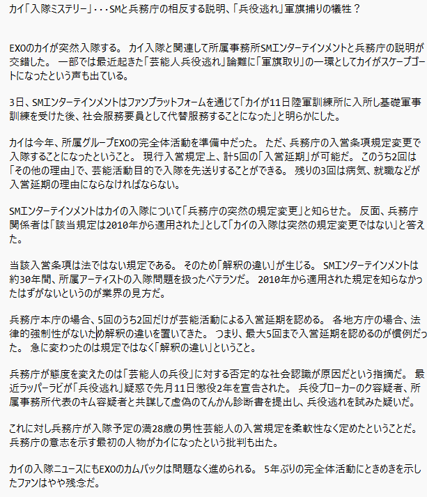 カイ「入隊ミステリー」···SMと兵務庁の相反する説明、「兵役逃れ」軍旗捕りの犠牲? (画像はパパゴ訳)