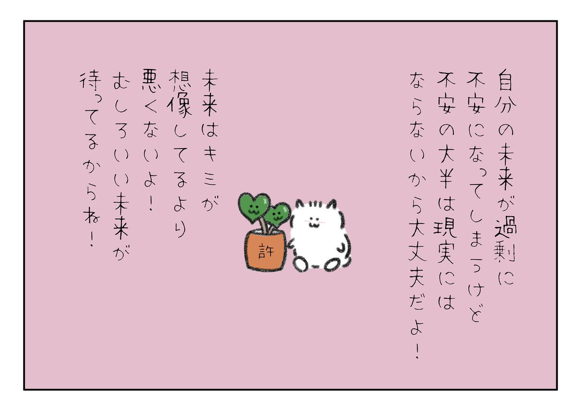 今週も生き延びて偉いね、泣きたい時は泣いて、声出して泣いて、自分にハグして、あったかいお風呂で温めて、弱ってる時は息出来てるだけで十分。たくさん褒めてあげてね。いつも毎日頑張ってて偉い。頑張り屋さんでちょっと弱い君は世界一尊い存在だよ、今日も一日お疲れ様。偉いね、よく頑張ったね。