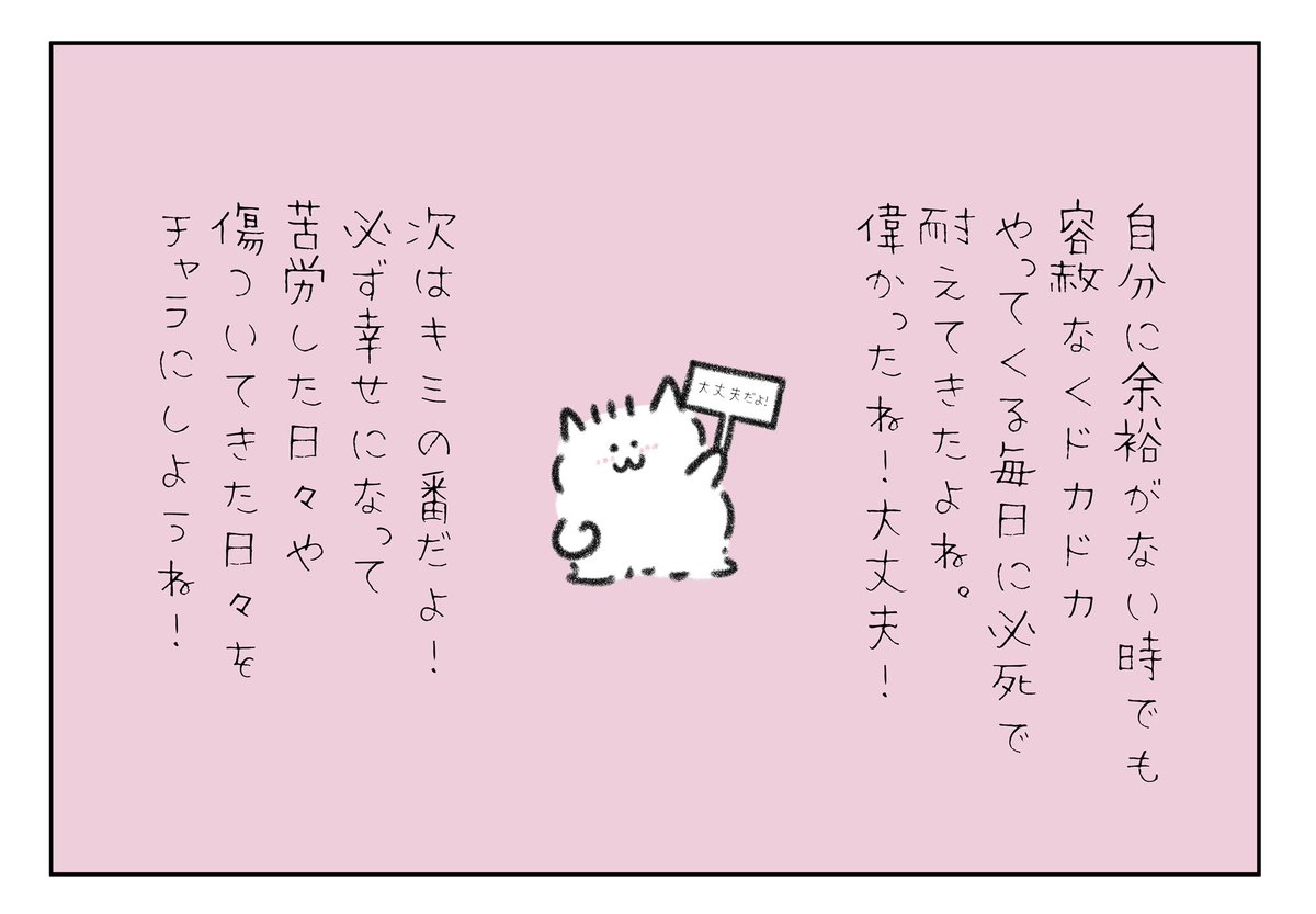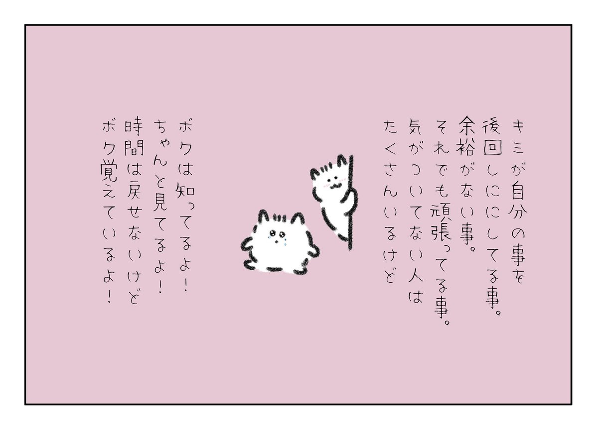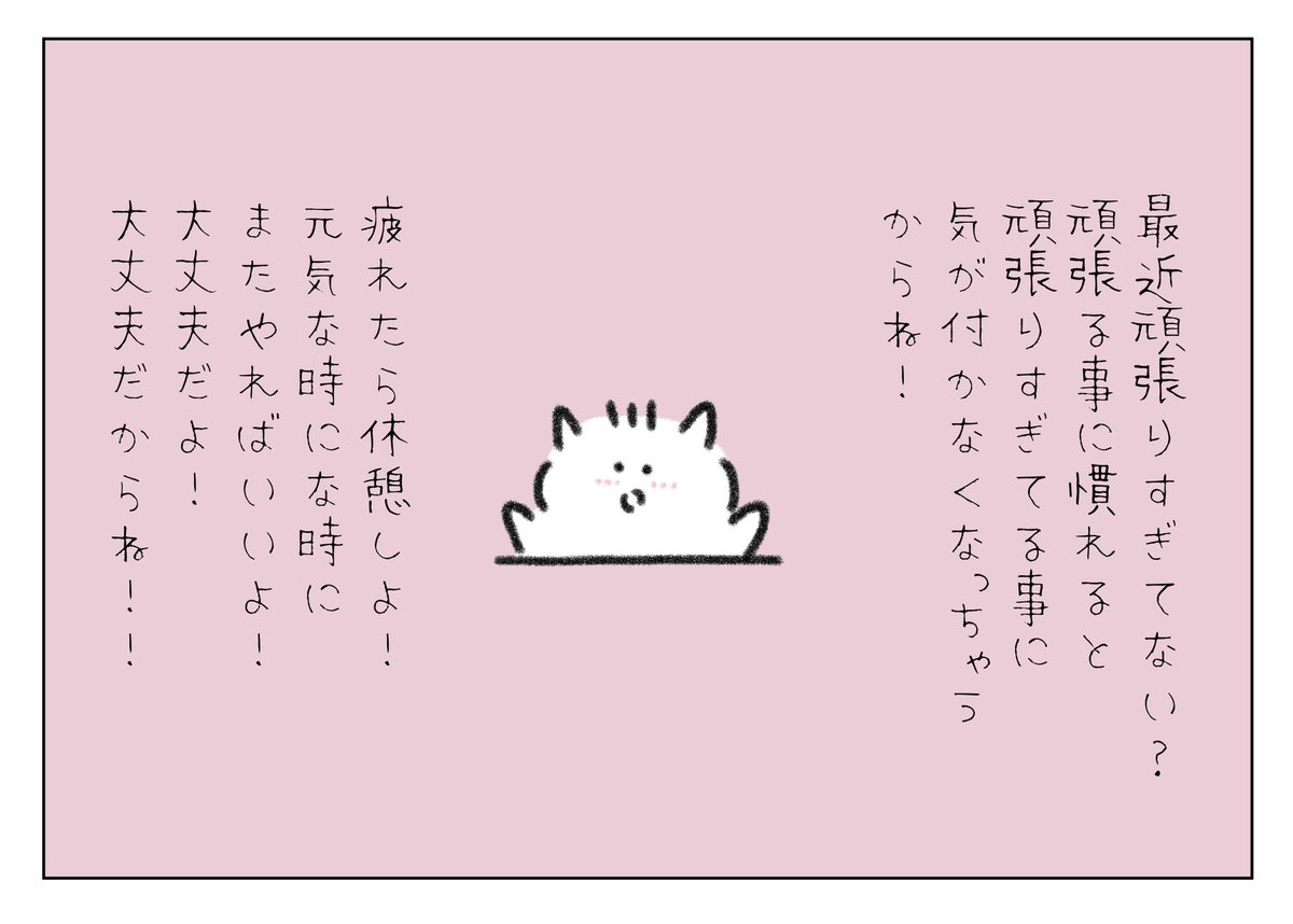本当はあなたが一番頑張っているのに、他の人にも「頑張ってるね」と褒めてあげられるあなたは本当に強いよ。賢くて偉いから出来ることだね、すごい!