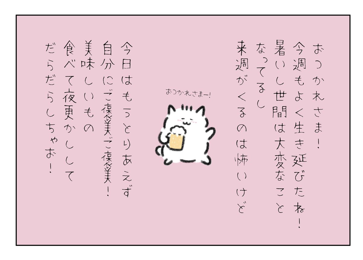 今日も自分のこと褒めてあげたかな?ちょっとしたことでも、あなたにしかできない素晴らしいこと。当たり前じゃないすごいこと。今日もちゃんと生きててくれてありがとう