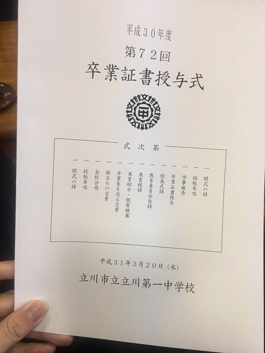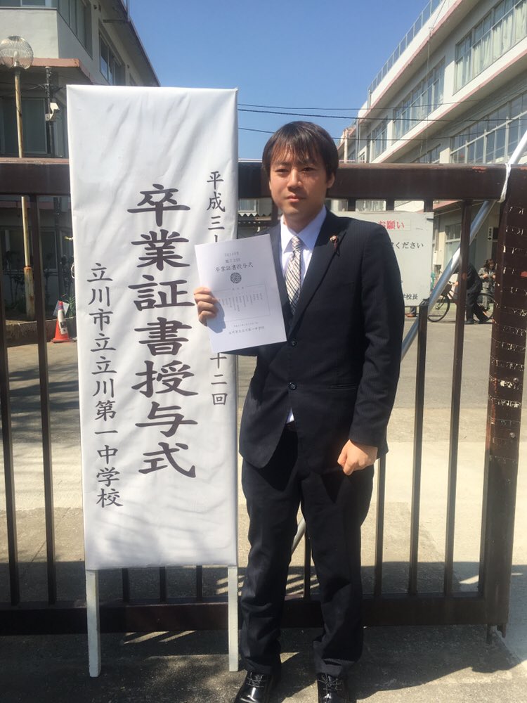 午前中は立川第一中学校の卒業式に出席して参りました。 卒業式では感動して気づけば涙を流してました。感動の涙は映画「キミの名は」以来に泣きました。 人には優しくすること、そして困難には立ち向かう気持ち、私が忘れてた大事な何かを思い出してくれました。