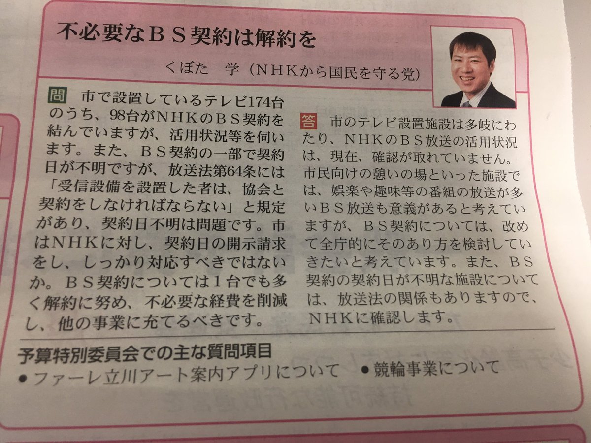 元東京都立川市議、くぼた学 【NHKから国民を守る党】 NHK党コールセンター長、元立川市文教委員副委員長 080-2984-0110 ウェブサイト: