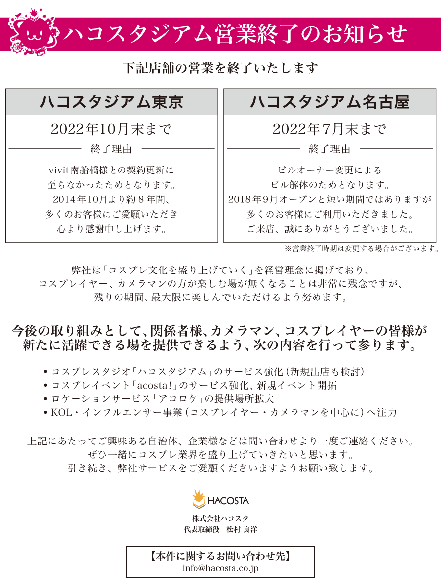 ハコアム名古屋の 最終営業日が決定いたしました!