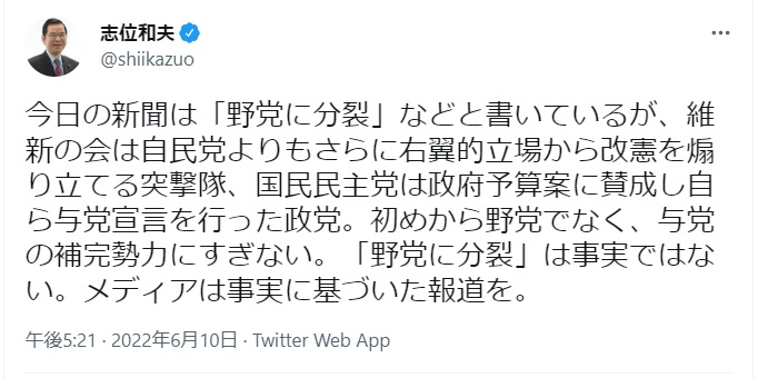 【政局】私は日本維新の会支持者でも反維新でもありません(個人的に応援している方はいます)が、ここ数回の国政/地方選挙における躍進を見て、言わずにはおれません。自民党が選挙で、特に大阪などにおいて負けないようにするには、維新を批判する前に、本来の“自民党”を取り戻してほしいと。… twitter.com/i/web/status/1…