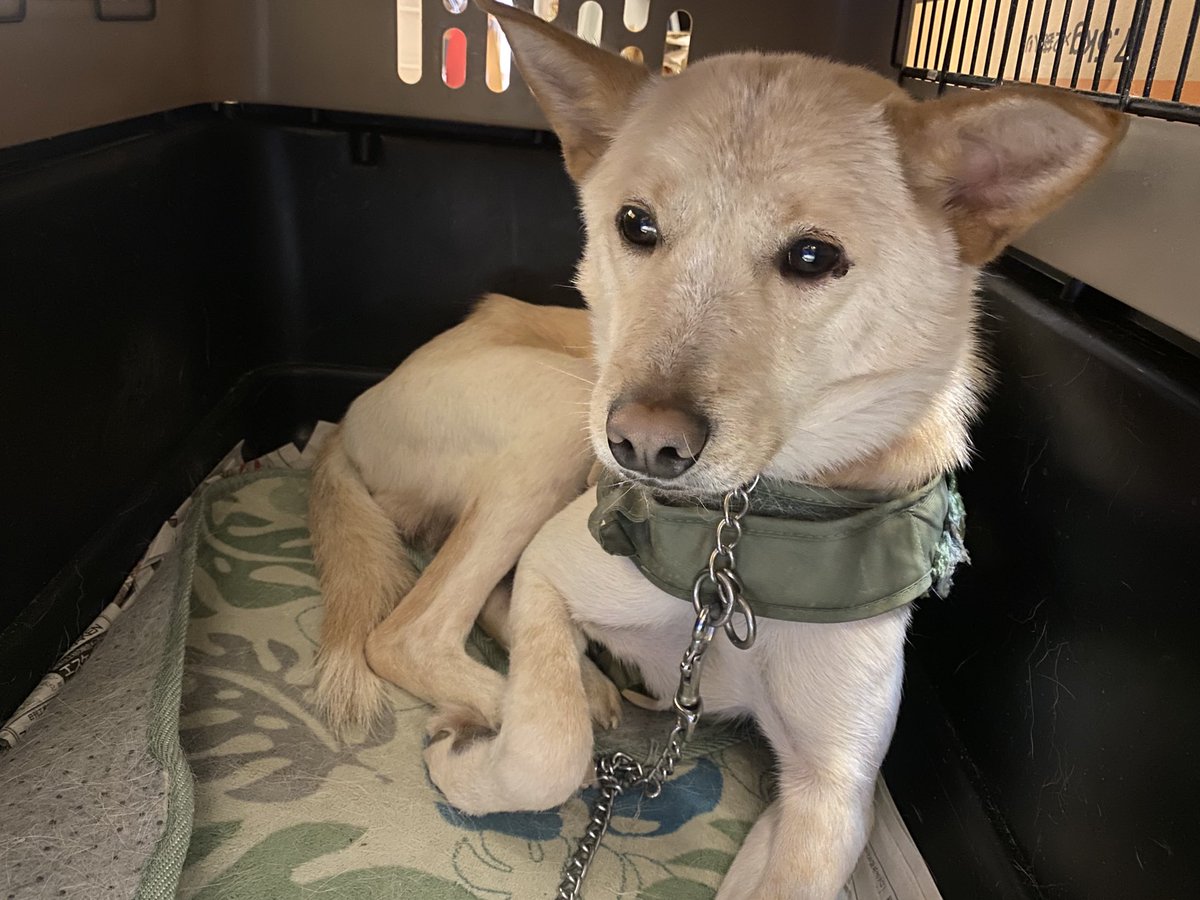 まだ若い子。随分と写真の状態から変わったことでしょうね。トキもそうてわした。でも、怖い環境に長く置かれて、心がどれほど傷ついているのかは計り知れません。幸せを運んでくれるこの子をどうかお家に迎え入れてあげてほしい。トキのように綺麗な目をした賢い子のはず。 twitter.com/gollfe/status/…