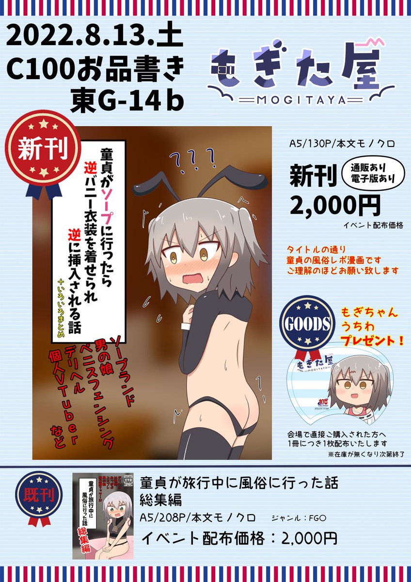 夏コミ新刊「童貞がソープに行ったら逆バニー衣装を着せられ逆に挿入される話」の書店予約がはじまりました!!