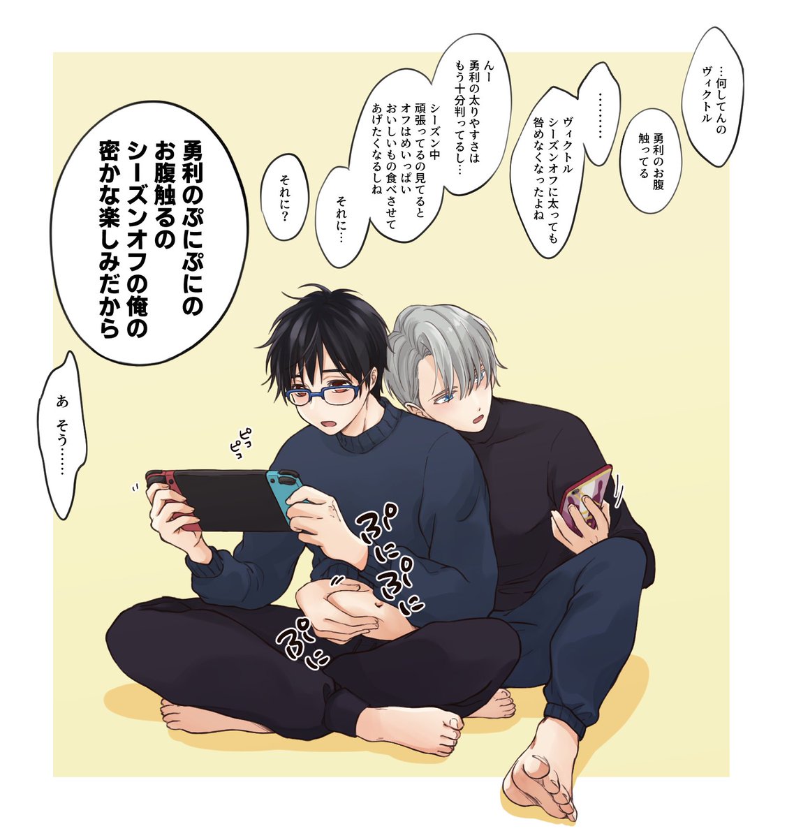 ヴィクトルがシーズンオフのたびにぷにぷにになるゆうりくんのおなか触ってると思うと…尊いなって…