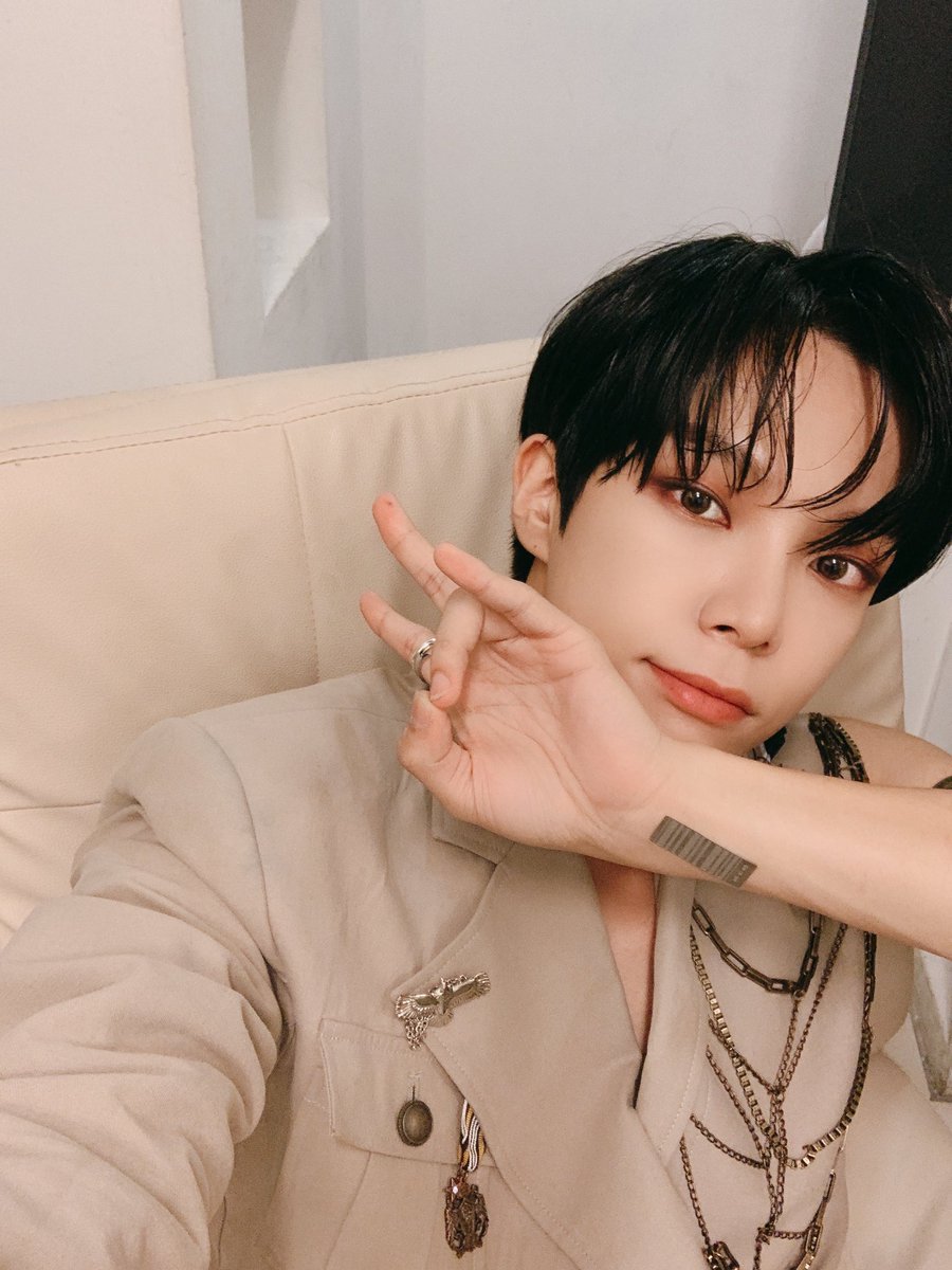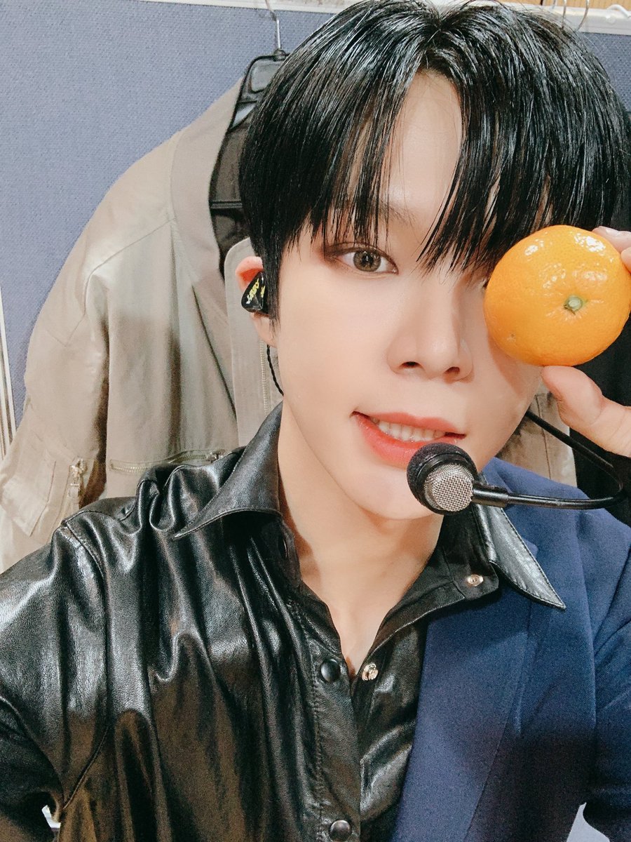오늘의 엠카!!!💜🤍 대기실에서 귤을 까먹었어요😍 베러들도 따뜻하게 귤먹어랏!!! 오늘은 빽투더아이돌에서 최고 멋진 선배님 민혁선배님 무대!!! 집가서 챙겨볼거에요😏